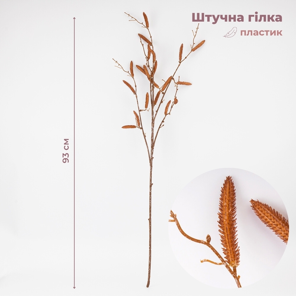 Зверніть увагу, що внаслідок недавньої атаки дронів частина партії має незначний аромат гарі, який повністю вивітрюється протягом короткого часу. Штучна гілка верби з сережками — стильний елемент для сезонного та інтер’єрного декору. Натуральна фактура гілки та реалістичні сережки створюють ефект живої рослини. Вона гармонійно виглядатиме у вазі як самостійна прикраса або в композиціях із сухоцвітами, квітами чи зеленню. Така гілка ідеально підходить для весняного оздоблення вітрин, фотозон, ресторанів чи домашнього інтер’єру, додаючи простору затишку та природної естетики.