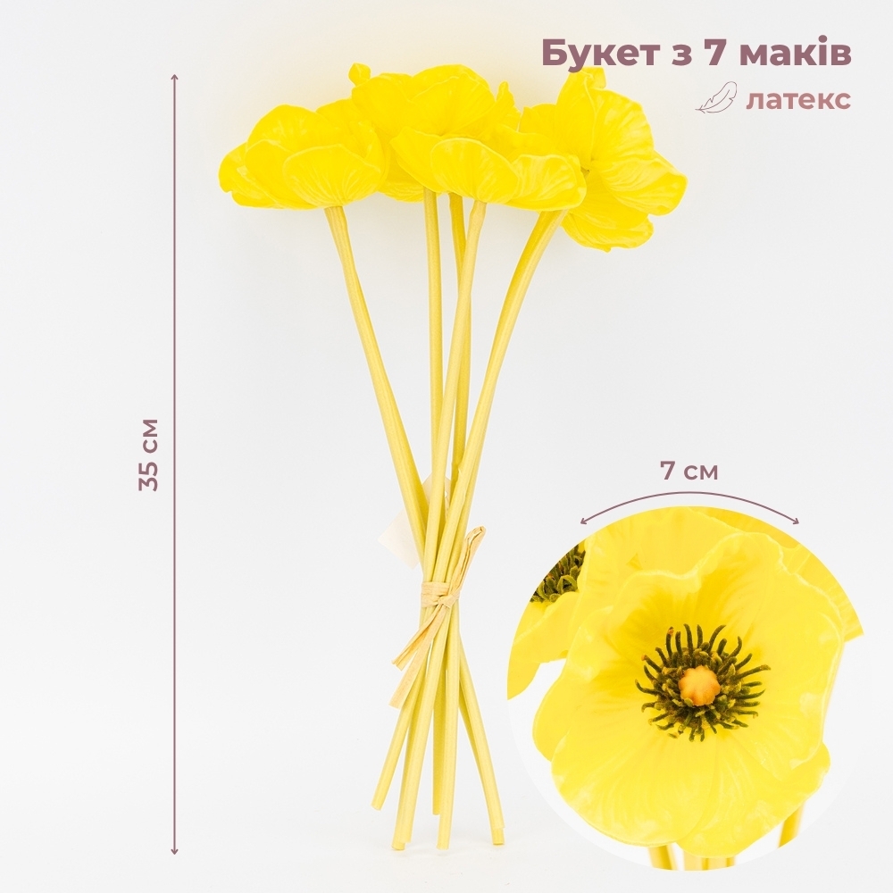 Букет маків, 7 бутонів, жовтий, 35 см ВРЯТОВАНА ПОЗИЦІЯ (9259-080)