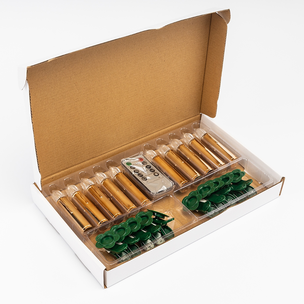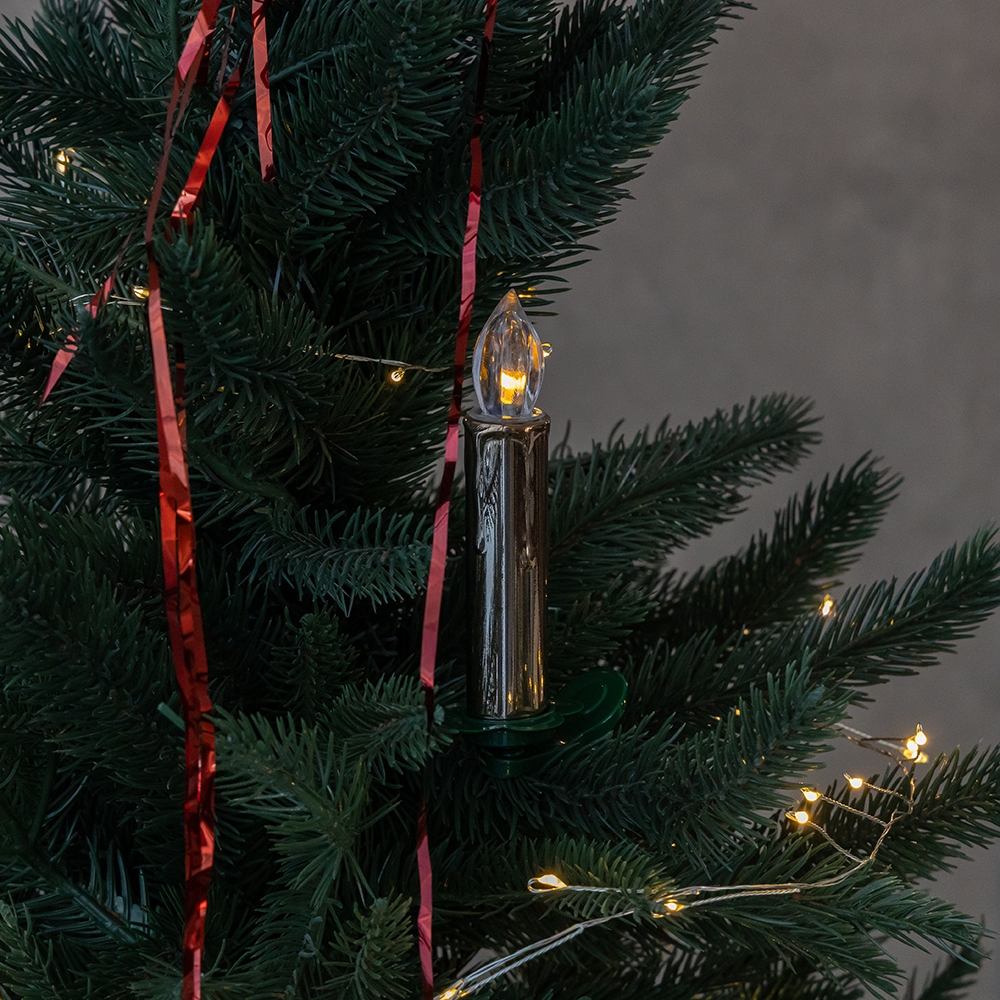 Висота з прищіпкою - 12 см, без прищіпки - 10 см, діаметр - 2 см. Світлодіодні свічки легко кріпляться за допомогою надійних прищепок — можна закріпити їх на ялинці, гірляндах, вінках чи будь-якому декорі. За допомогою пульта дистанційного керування зручно керувати яскравістю та режимами. Ідеальне рішення для святкового декору — тепле, затишне світло, яке не мерехтить і створює справжню атмосферу різдвяного затишку.