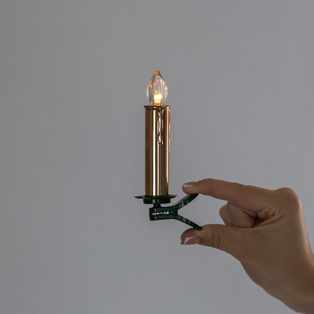 Набір з 10 світлодіодних свічок (LED) з кліпсами на ялинку, золотий, 10 см (9261-001)
