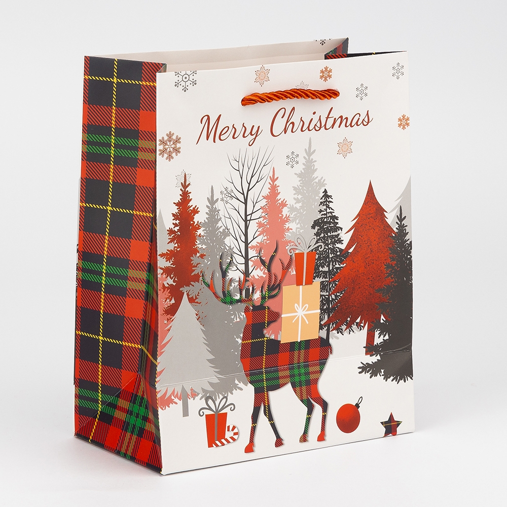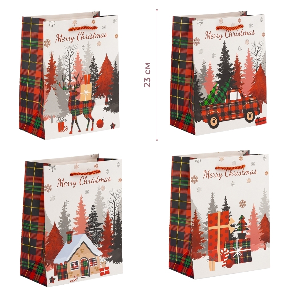 Висота - 23 см, довжина - 18 см, ширина - 10 см. В пакуванні 12 пакетів різного дизайну. Подарунковий пакет створює особливу атмосферу очікування і радості, підкреслюючи значення подарунка і роблячи його прийняття ще більш особливим і запам'ятовуваним. Паперовий матеріал додає легкості, але водночас забезпечує достатню міцність для перенесення подарунків. Цей пакет ідеально підходить для упаковки подарунків для близьких та друзів, даруючи їм теплі почуття святкової атмосфери. Красива новорічна тематика пакета не лише зробить його привабливим зовнішньо, але й створить настрій очікування та радості, відображаючи дух цього чарівного свята.
