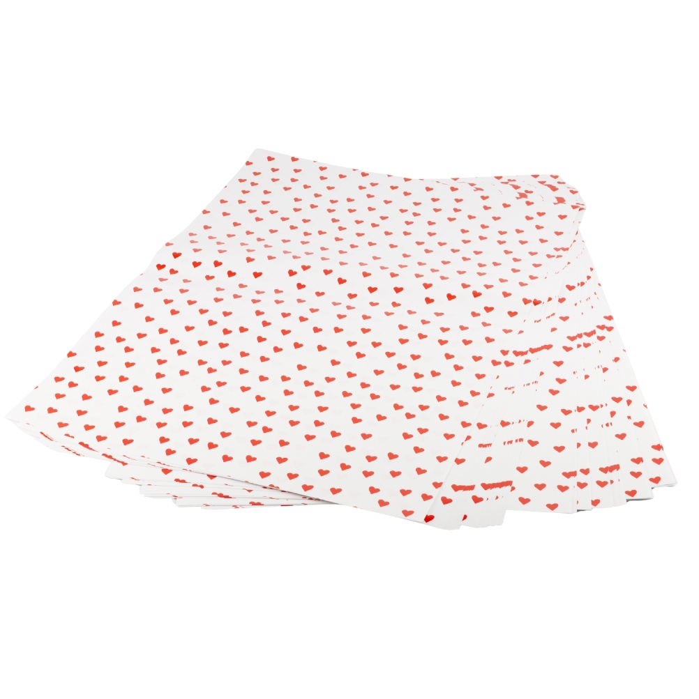 Довжина - 70 см, ширина - 50 см. В пакуванні 100 шт. Стильний пакувальний папір із романтичним принтом — червоні сердечка на білому тлі створюють теплу та святкову атмосферу. Такий дизайн чудово підійде для Дня святого Валентина, весіль, річниць або просто для подарунка, зробленого від душі. Папір щільний, легко складається та тримає форму, завдяки чому ваш подарунок завжди виглядатиме акуратно та ефектно. Ідеальний вибір для декораторів, магазинів подарунків та тих, хто хоче підкреслити особливість кожного моменту!