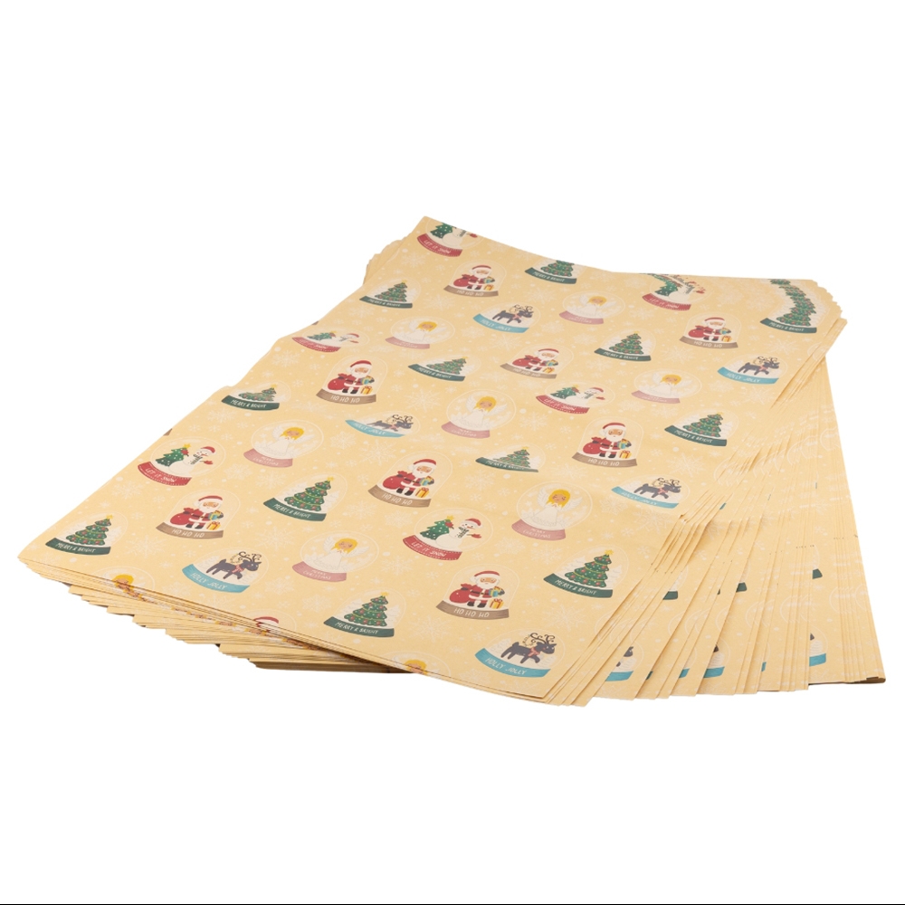 Довжина - 70 см, ширина - 50 см. В пакуванні 100 шт. Стильний пакувальний папір із чарівним новорічним принтом — Санта, ялинки, сніговики та олені в кулях створюють атмосферу справжнього зимового дива. Такий дизайн стане чудовим вибором для пакування подарунків на Різдво та Новий рік, додаючи вашим сюрпризам святкової магії. Папір щільний, легко складається та зберігає форму, тому подарунок виглядатиме акуратно та яскраво. Ідеальний варіант для декораторів, магазинів подарунків та всіх, хто хоче зробити свято особливим!