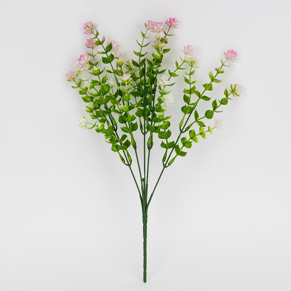 Штучна зелена гілка з рожевими суцвіттями, 35 см (9273-012)
