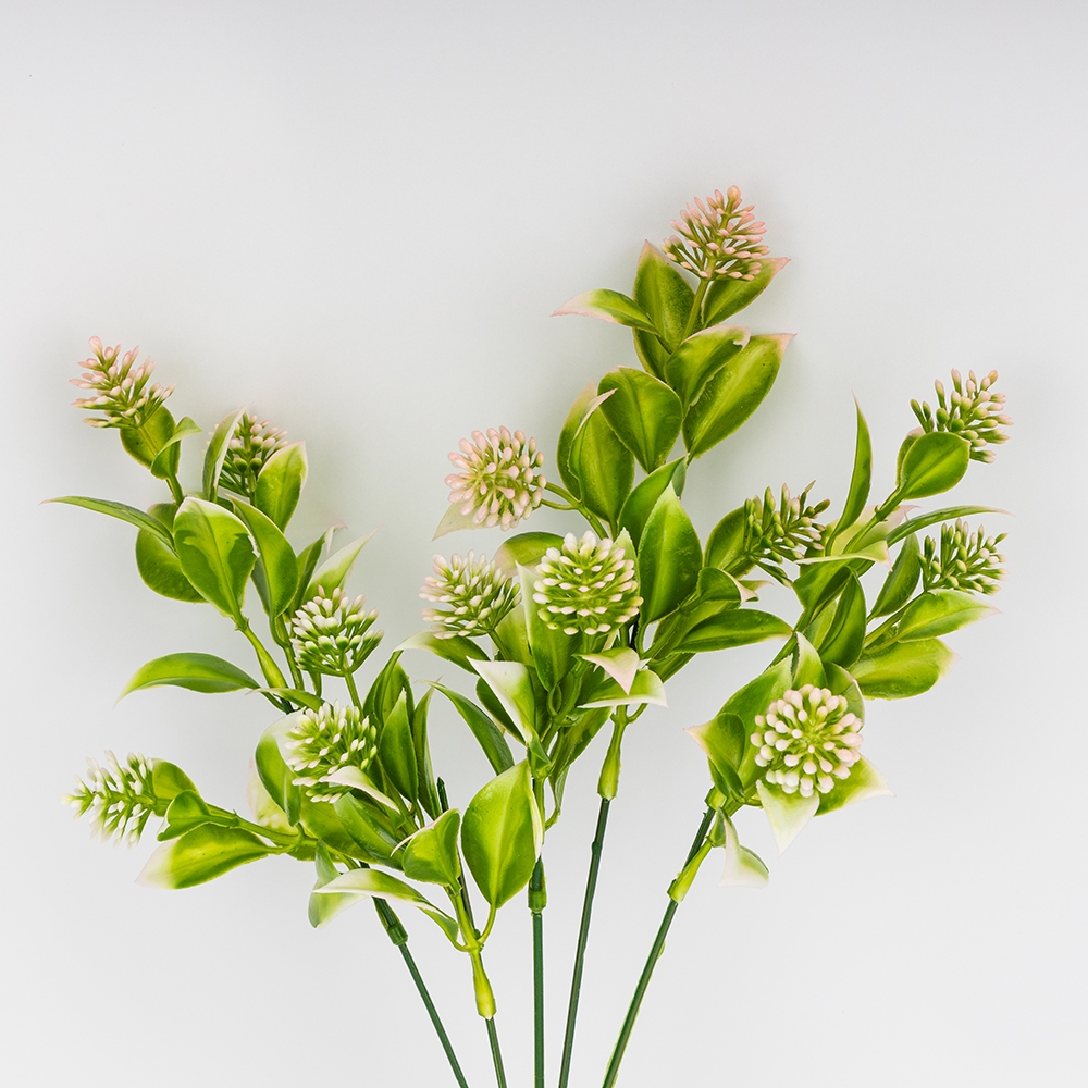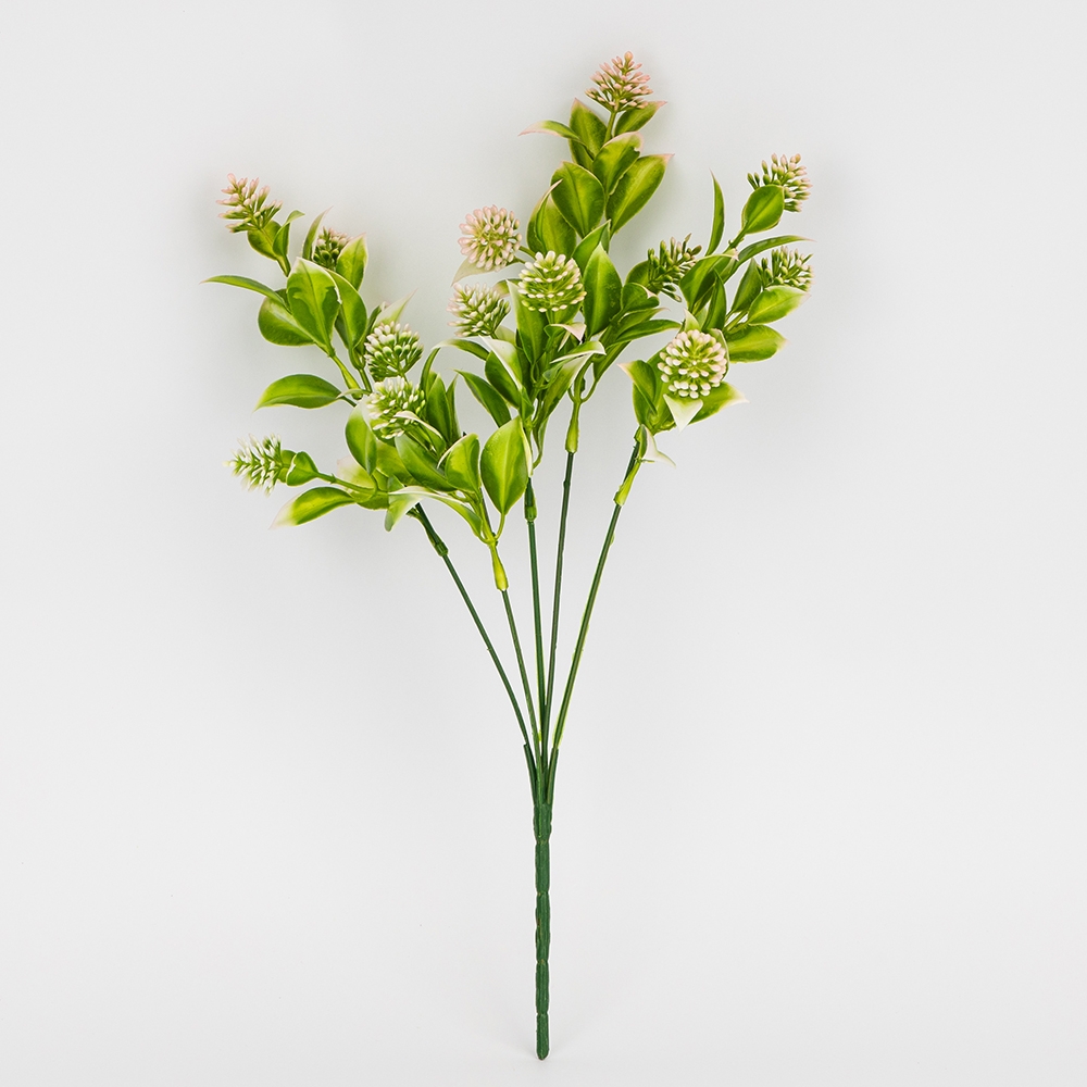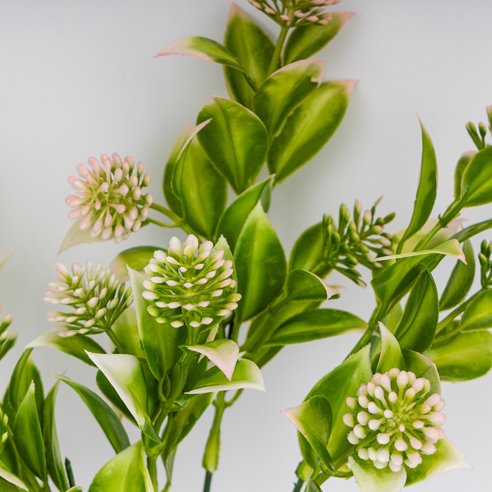Висота - 35 см. Штучна гілка з суцвіттям – елегантний декор для будь-якого інтер'єру. Її зелені листя в поєднанні з ніжними суцвіттями створюють ефектний акцент, що привертає увагу. Ідеально підходить для використання в кафе, ресторанах, готелях, вітринах, фотозонах та інтер'єрних композиціях. Ця гілка додає простору свіжість і природність, ідеально поєднуючись з іншими декоративними елементами. Вона не потребує складного догляду, а завдяки своєму універсальному дизайну підходить для будь-якого стилю оформлення, від сучасного до класичного.