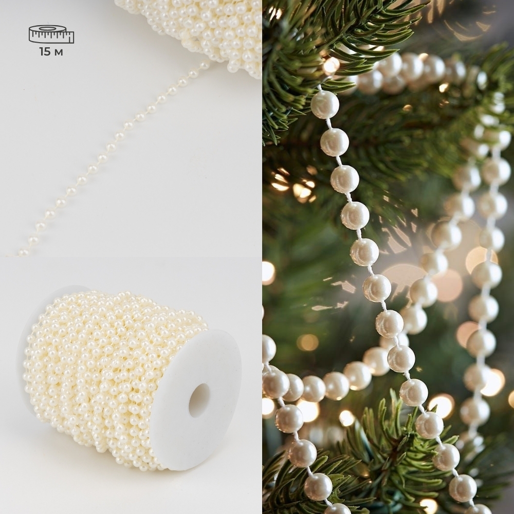 Гірлянда з намистин, кремова, 15 м (9275-003)