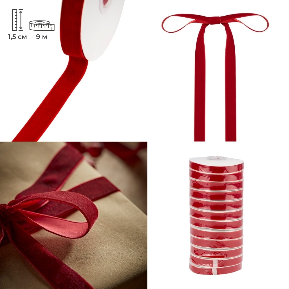 Ширина - 1,5 см, довжина - 9 м. Оксамитова стрічка — універсальний матеріал для декору, рукоділля та святкового оформлення. Вона м’яка на дотик, має насичений колір і благородну матову текстуру, що надає виробам елегантності. Стрічка ідеально підходить для створення бантів, прикрашання подарунків, флористичних композицій, декору залів чи вітрин. Легко поєднується з іншими матеріалами та стане стильним акцентом у будь-якому оформленні.