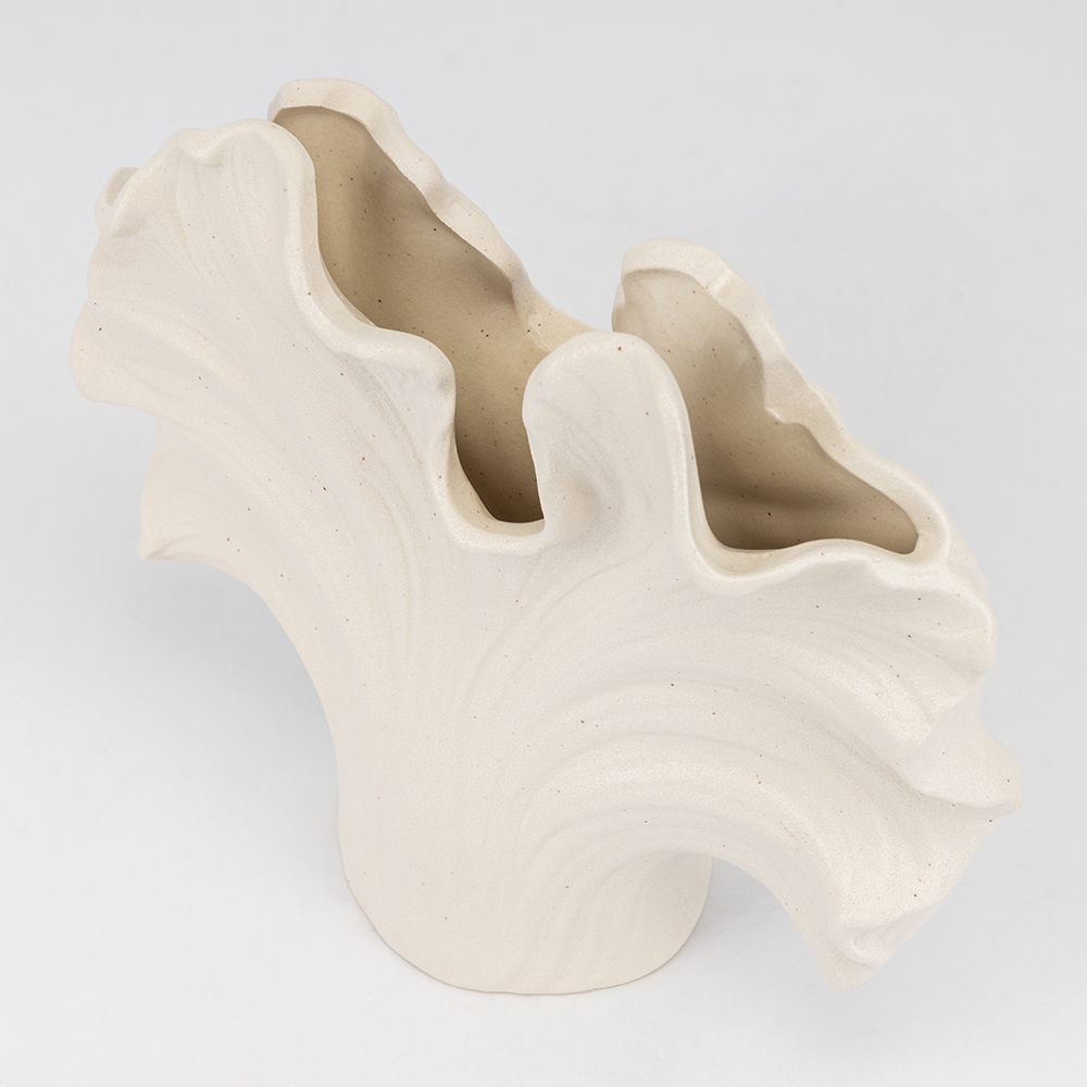 Висота — 20 см, ширина — 20 см. Керамічна ваза — ідеальний спосіб прикрасити ваш заклад, дім або фотостудію. Цей виріб поєднує в собі елегантний, скульптурний дизайн і високу практичність. Ця ваза натхненна морською тематикою та природними формами океану, що робить її яскравим акцентом, який додає інтер'єру унікальної текстури та візуальної динаміки.