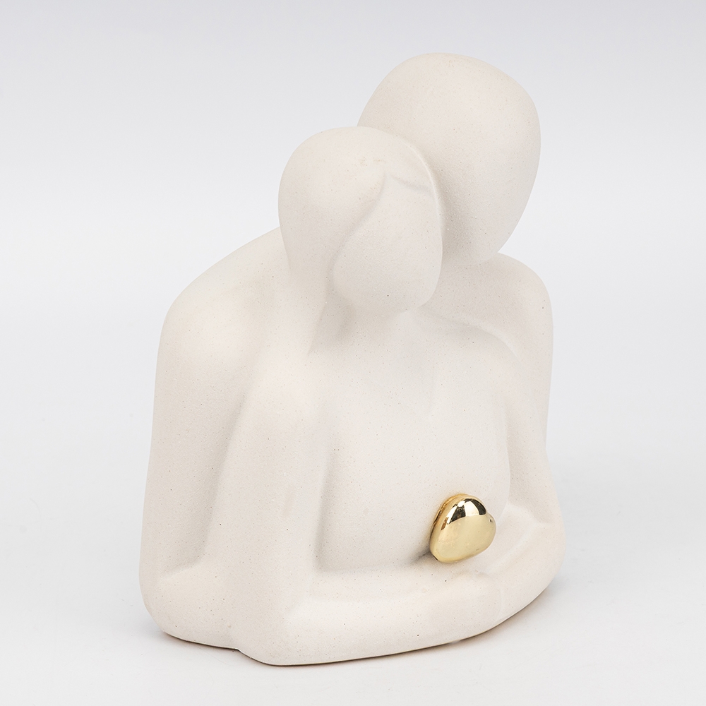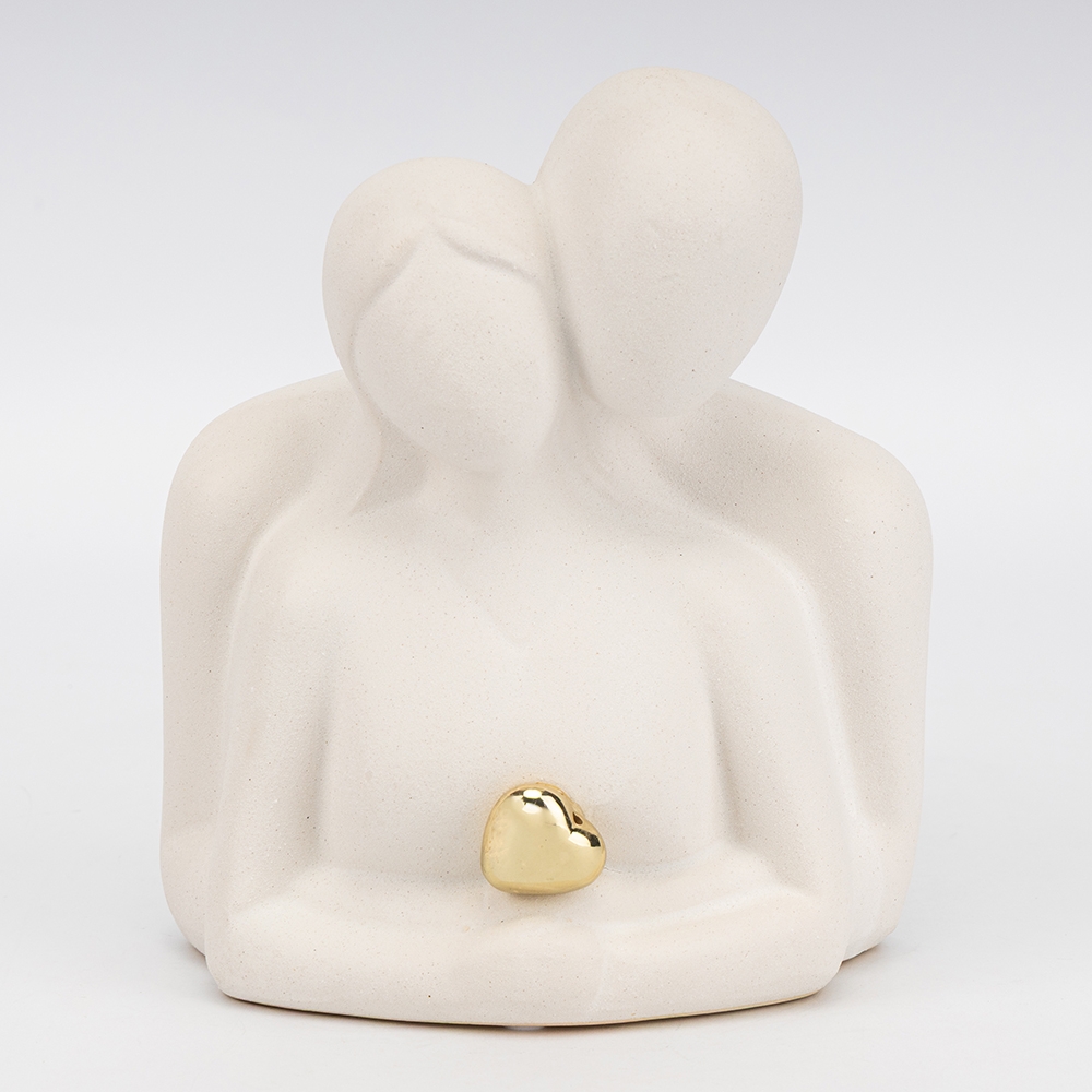 Висота статуетки — 16 см, довжина — 15 см, ширина — 9 см. Декоративна статуетка, що символізує любов та єднання, викликає неймовірне захоплення своєю витонченою абстрактною формою, емоційним мінімалізмом та якістю виконання. Статуетка близькості та підтримки — це креативний декор для Вашої оселі, офісу чи фотостудії. Вона є чудовим подарунком для другої половинки, близьких на річницю, заручини чи День закоханих. Фігурка має вишуканий та сучасний зовнішній вигляд. Вона виготовлена з високоякісного матеріалу — кераміки, має стильний колір та витончений акцент — блискуче золоте серце. Статуетка викликатиме приємні емоції, трепетні спогади про важливі моменти та нагадуватиме про силу взаємної підтримки. Фігурка стійко стоїть на поверхні.
