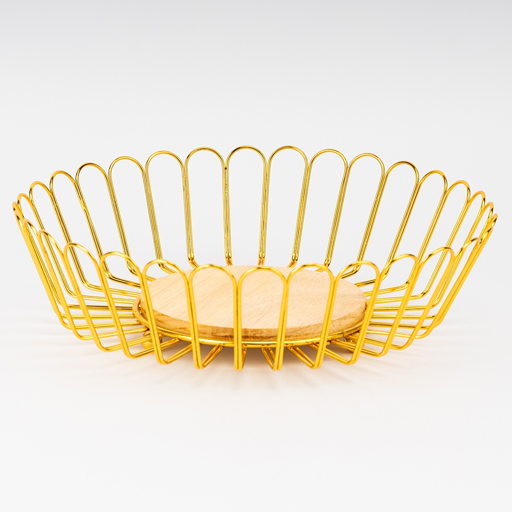 Зверніть увагу, що внаслідок недавньої атаки дронів частина партії має незначний аромат гарі, який повністю вивітрюється протягом короткого часу. Діаметр - 28 см. Висота - 9 см. Металева фруктівниця виповнена у сучасному мінімалістичному стилі. Це не тільки практична річ, а й витончений елемент декору. Золотий вишуканий дизайн виглядатиме ідеально на будь-якій кухні, у кафе чи фотостудії. Відмінний варіант для зберігання фруктів, овочів, цукерок тощо.