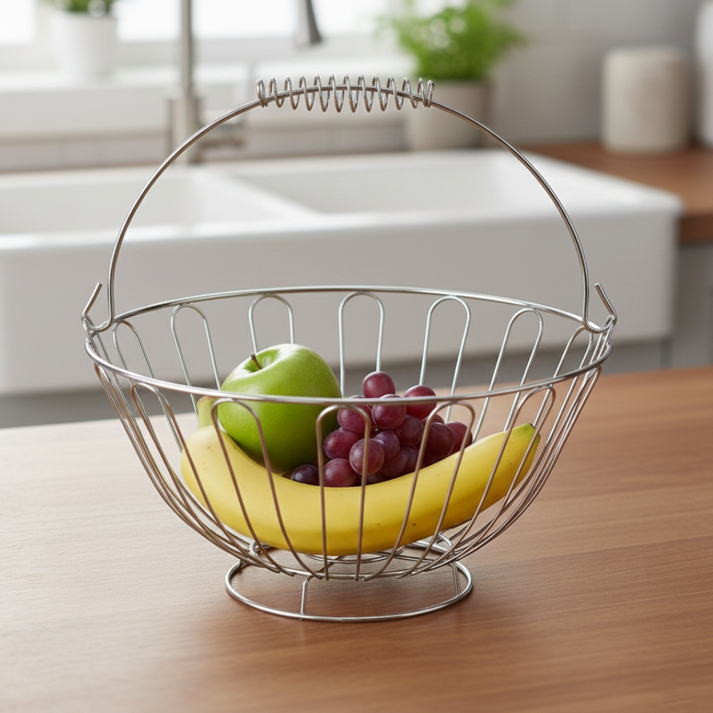 Зверніть увагу, що внаслідок недавньої атаки дронів частина партії має незначний аромат гарі, який повністю вивітрюється протягом короткого часу. Діаметр - 24 см. Металева фруктівниця виповнена у сучасному мінімалістичному стилі. Це не тільки практична річ, а й витончений елемент декору. Срібний дизайн виглядатиме ідеально на будь-якій кухні, у кафе чи фотостудії. Відмінний варіант для зберігання фруктів, овочів, цукерок тощо.