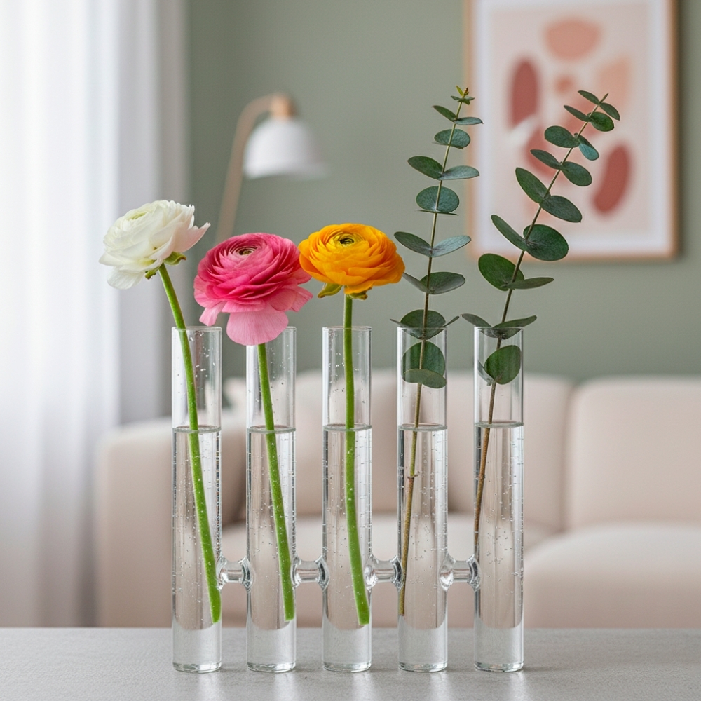 Ваза з 5 колб «Сучасність» — це стильний та сучасний аксесуар для інтер’єру, який поєднує простоту форм і витончену елегантність. Прозоре скло та лаконічний дизайн роблять її універсальною для будь-якого стилю — від класики до модерну. Ваза ідеально підходить для живих чи штучних квітів, гілочок, сухоцвітів, а також для створення флористичних композицій. Її можна використовувати як центральний елемент на столі, підвіконні чи вітрині. Завдяки формату з п’ятьма окремими колбами, композиції виглядають більш об’ємними та гармонійними. Така ваза стане яскравим акцентом у домі, ресторані чи на святковому заході.