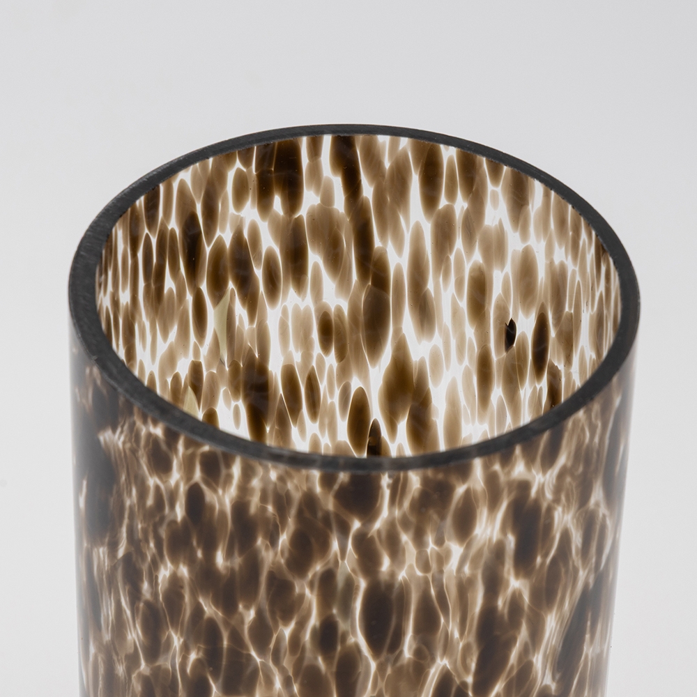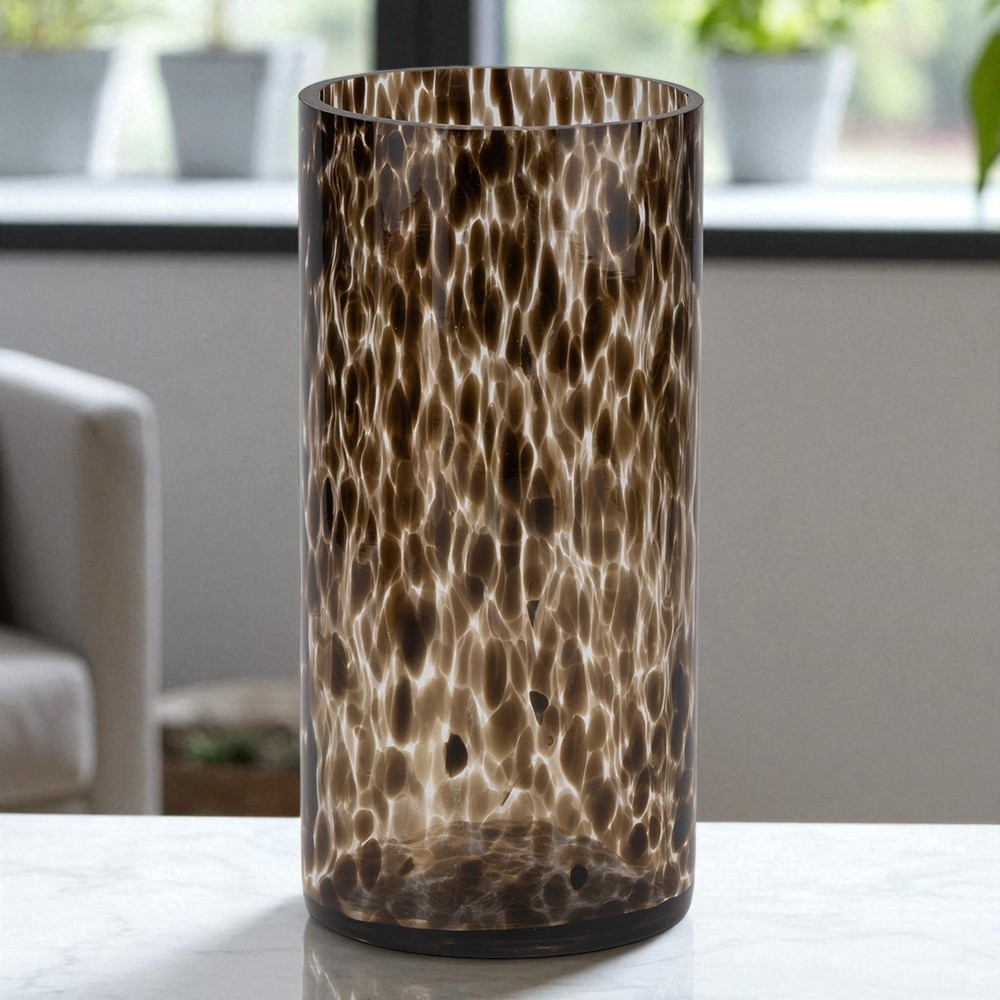 Висота - 24,5 см, Діаметр - 11,5 см. Ця скляна ваза виконана в унікальній техніці з ефектом краплин та плавних переходів кольору. Вона поєднує елегантність ручної роботи й сучасний дизайн, стаючи яскравим акцентом у будь-якому інтер’єрі. Завдяки своїй формі та візерунку, ваза підкреслює красу квіткових композицій або може слугувати самостійним декоративним елементом. Така ваза ідеально пасує для дому, ресторанів, готелів чи стильних фотозон.