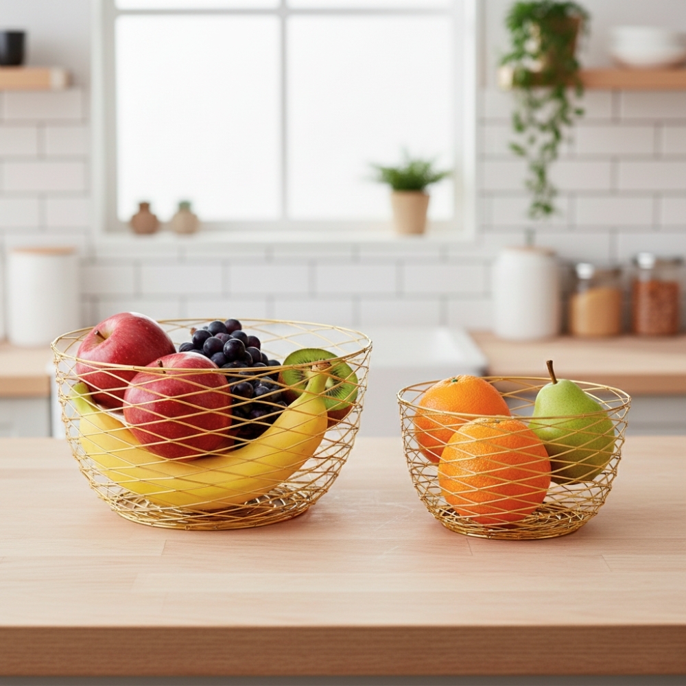 Зверніть увагу, що внаслідок недавньої атаки дронів частина партії має незначний аромат гарі, який повністю вивітрюється протягом короткого часу. Діаметр - 21 см та 25 см. Висота - 11 см та 11,5 см. Набір фруктівниць виконаний у сучасному мінімалістичному стилі, поєднує функціональність і естетику. Лаконічна форма й вишуканий дизайн роблять його стильним акцентом у будь-якому інтер’єрі — від домашньої кухні до кафе чи фотостудії. Фруктівниці зручно використовувати для сервірування фруктів, овочів, випічки або солодощів. Такий набір стане не лише практичним помічником, а й декоративним елементом, що додає простору елегантності та гармонії.