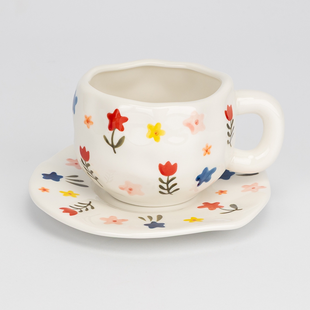 Діаметр тарілки – 15 см, об’єм чашки – 350 мл. Керамічна чашка з блюдцем з ніжним розписом створена вручну майстром. Кожна деталь — від форми до малюнка — дарує відчуття тепла й домашнього затишку. Завдяки оригінальному дизайну така чашка стане прикрасою святкового столу, стильним акцентом у кав’ярні чи ресторані, а також чудовим подарунком для близьких. Вона поєднує практичність і естетику, створюючи особливу атмосферу кожної трапези.