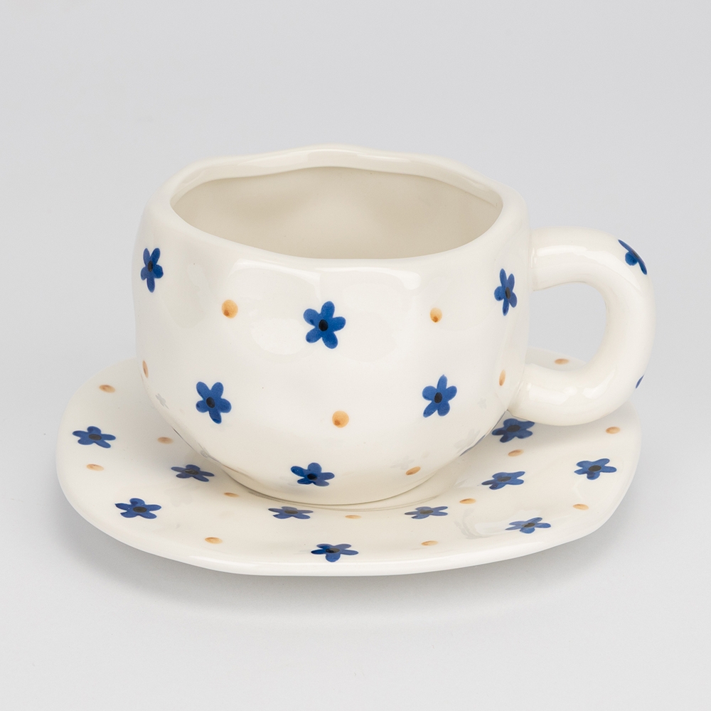 Діаметр тарілки – 15 см, об’єм чашки – 350 мл. Керамічна чашка з блюдцем з ніжним розписом створена вручну майстром. Кожна деталь — від форми до малюнка — дарує відчуття тепла й домашнього затишку. Завдяки оригінальному дизайну така чашка стане прикрасою святкового столу, стильним акцентом у кав’ярні чи ресторані, а також чудовим подарунком для близьких. Вона поєднує практичність і естетику, створюючи особливу атмосферу кожної трапези.