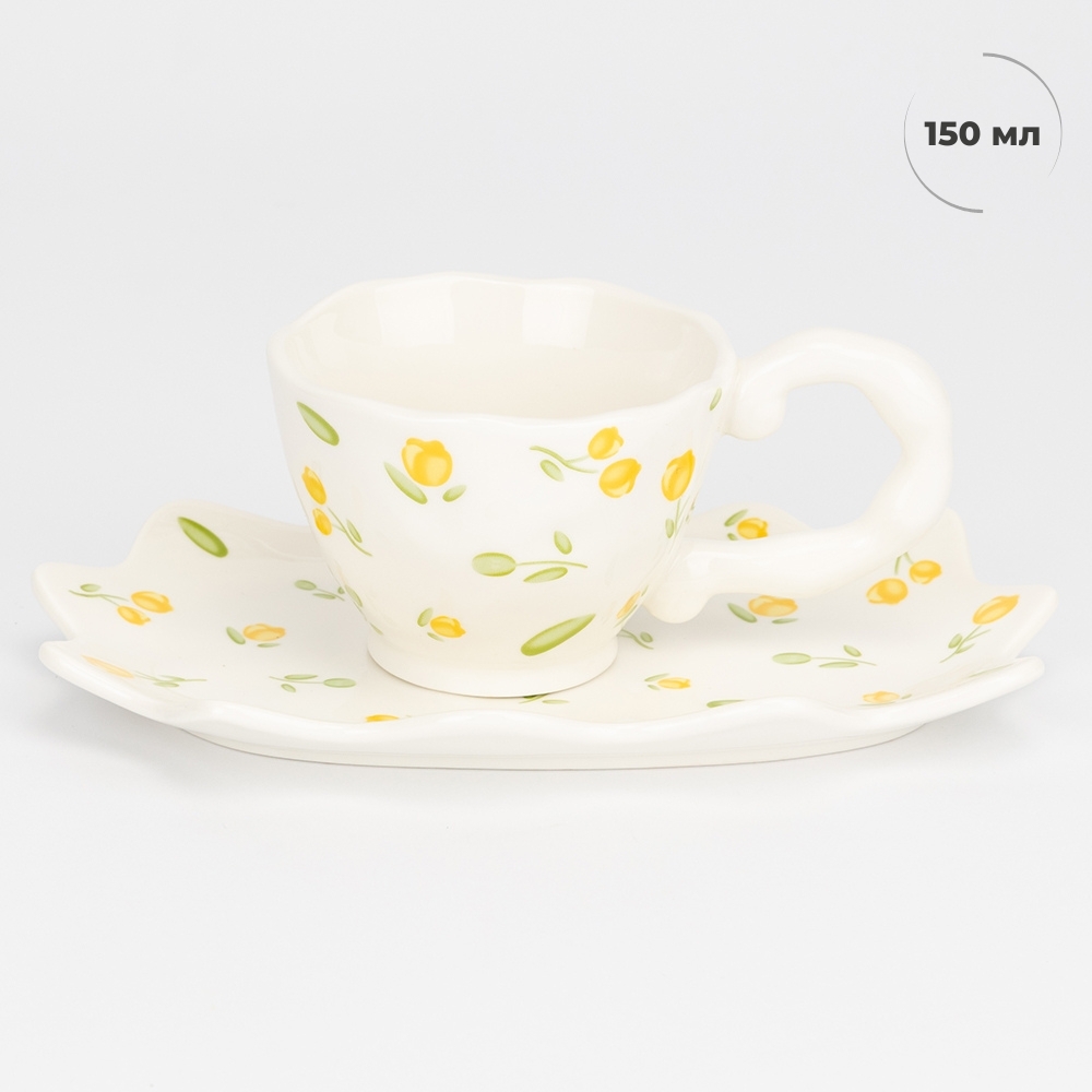 Чашка з блюдцем "Лимонний цвіт", 150 мл (9295-016)