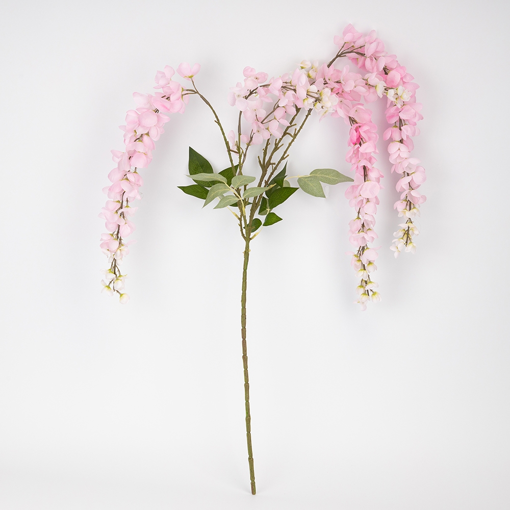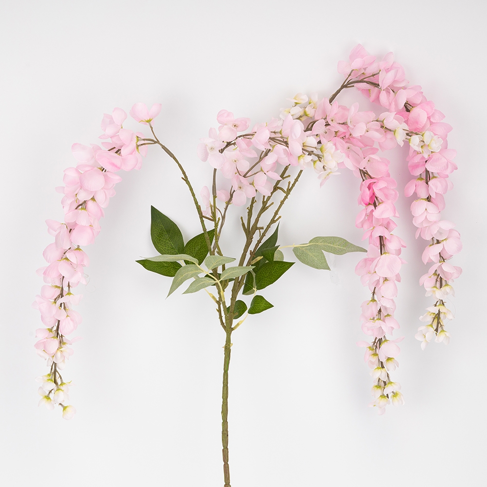 Висота – 110 см, діаметр квітки – 5 см. Штучна звисаюча гілка гліцинії з ніжними тканинними квітами створює легкий і романтичний ефект у декорі. Гнучке стебло дозволяє легко формувати композиції для арок, фотозон і святкових оформлень. Натуральний відтінок додає елегантності та гармонійно поєднується з будь-яким інтер’єром.