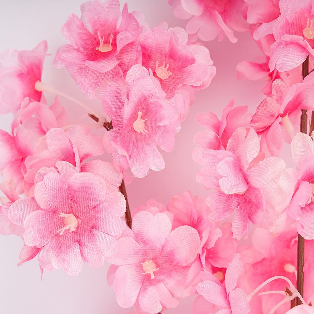 Висота – 96 см, діаметр квітки – 5 см. Виконана з тканини. Штучна гілка з ніжними квітами виглядає елегантно та реалістично, додаючи простору весняного настрою. Завдяки гнучкому стеблу її легко адаптувати для оформлення інтер’єру, фотозон чи святкових композицій. Висота робить її ідеальним вибором для ваз, арок та декоративних інсталяцій.