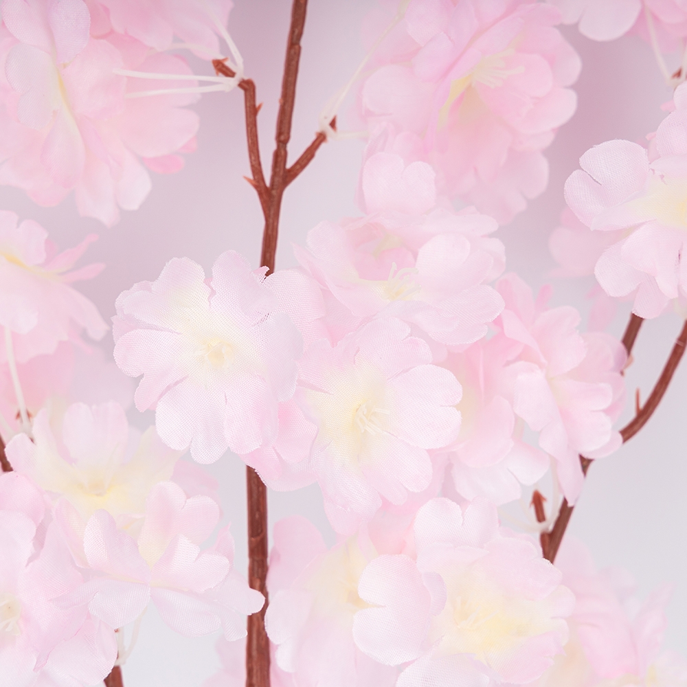 Висота – 96 см, діаметр квітки – 5 см. Виконана з тканини. Штучна гілка з ніжними квітами виглядає елегантно та реалістично, додаючи простору весняного настрою. Завдяки гнучкому стеблу її легко адаптувати для оформлення інтер’єру, фотозон чи святкових композицій. Висота робить її ідеальним вибором для ваз, арок та декоративних інсталяцій.