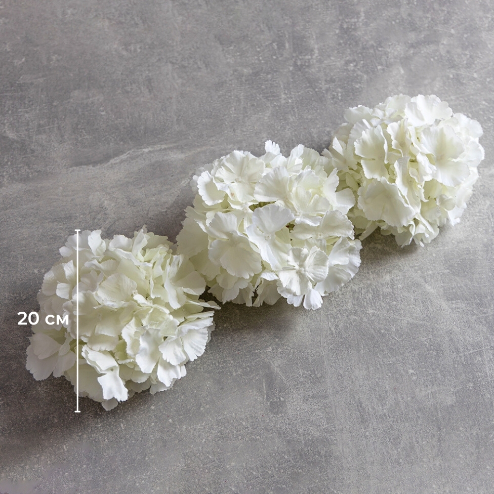 Диаметр – 20 см, высота – 12 см. Искусственная головка гортензии станет утонченным элементом во флористических композициях, декоре интерьера или оформлении мероприятий. Лепестки и листья изготовлены из качественной ткани, придающей бутону естественный вид. Хвостик стебля выполнен из прочного пластика, что облегчает фиксацию во флористических пенях или композициях. Идеально подходит для декораторов и сегментов HoReCa.