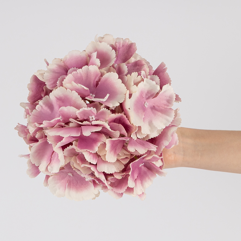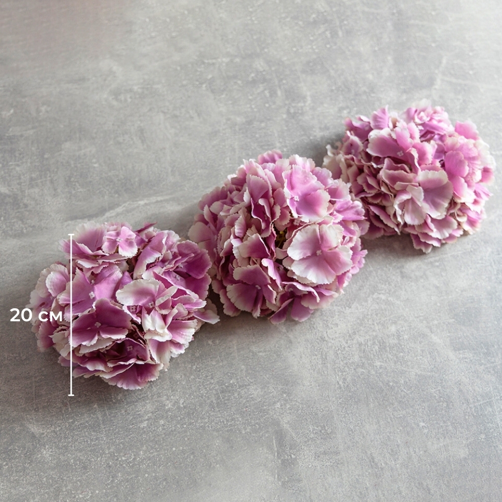 Диаметр – 20 см, высота – 12 см. Искусственная головка гортензии станет утонченным элементом во флористических композициях, декоре интерьера или оформлении мероприятий. Лепестки и листья изготовлены из качественной ткани, придающей бутону естественный вид. Хвостик стебля выполнен из прочного пластика, что облегчает фиксацию во флористических пенях или композициях. Идеально подходит для декораторов и сегментов HoReCa.