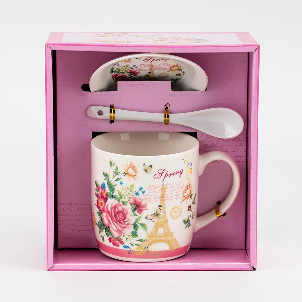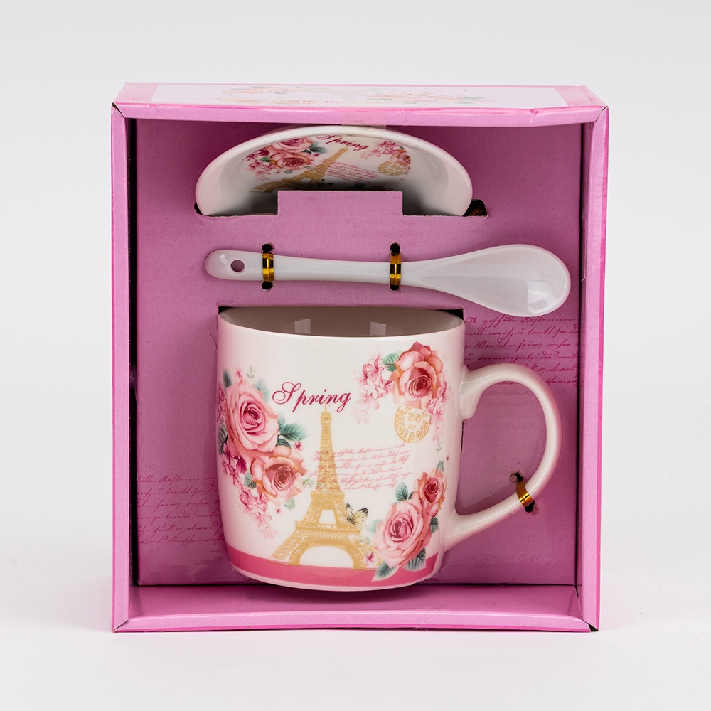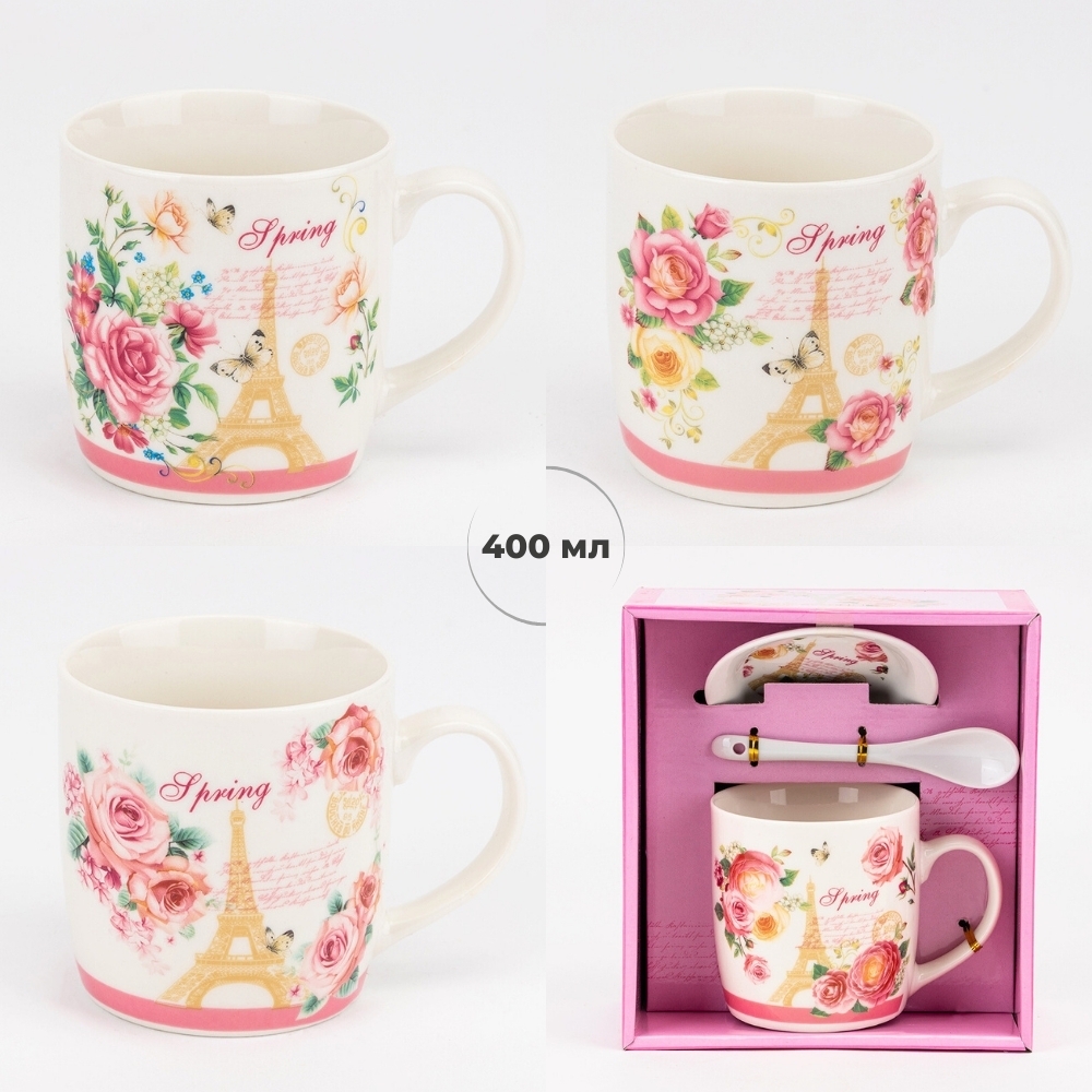 > Кружка с блюдцем и ложечкой "Париж", 400 мл * Рандомный выбор дизайна (19298-005)