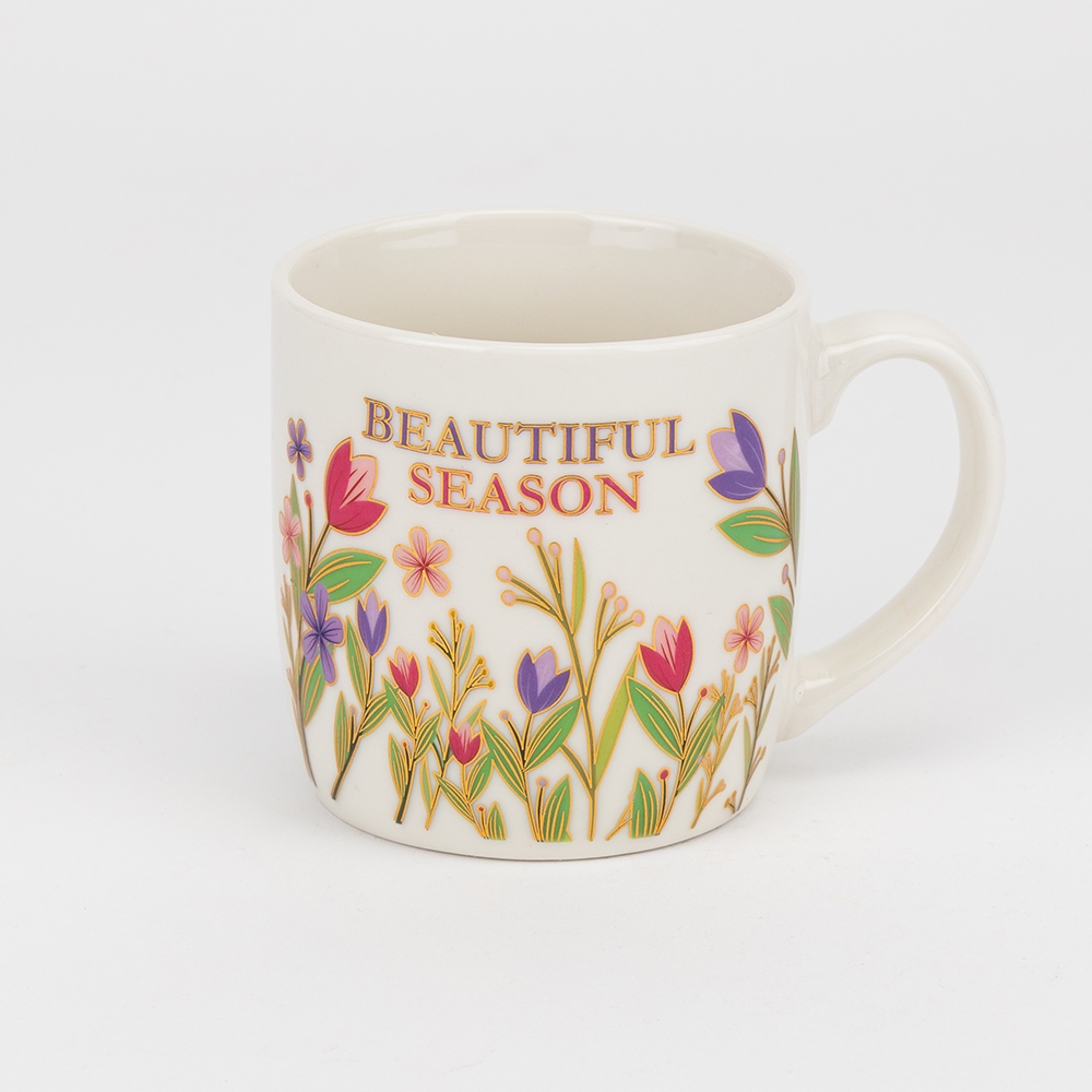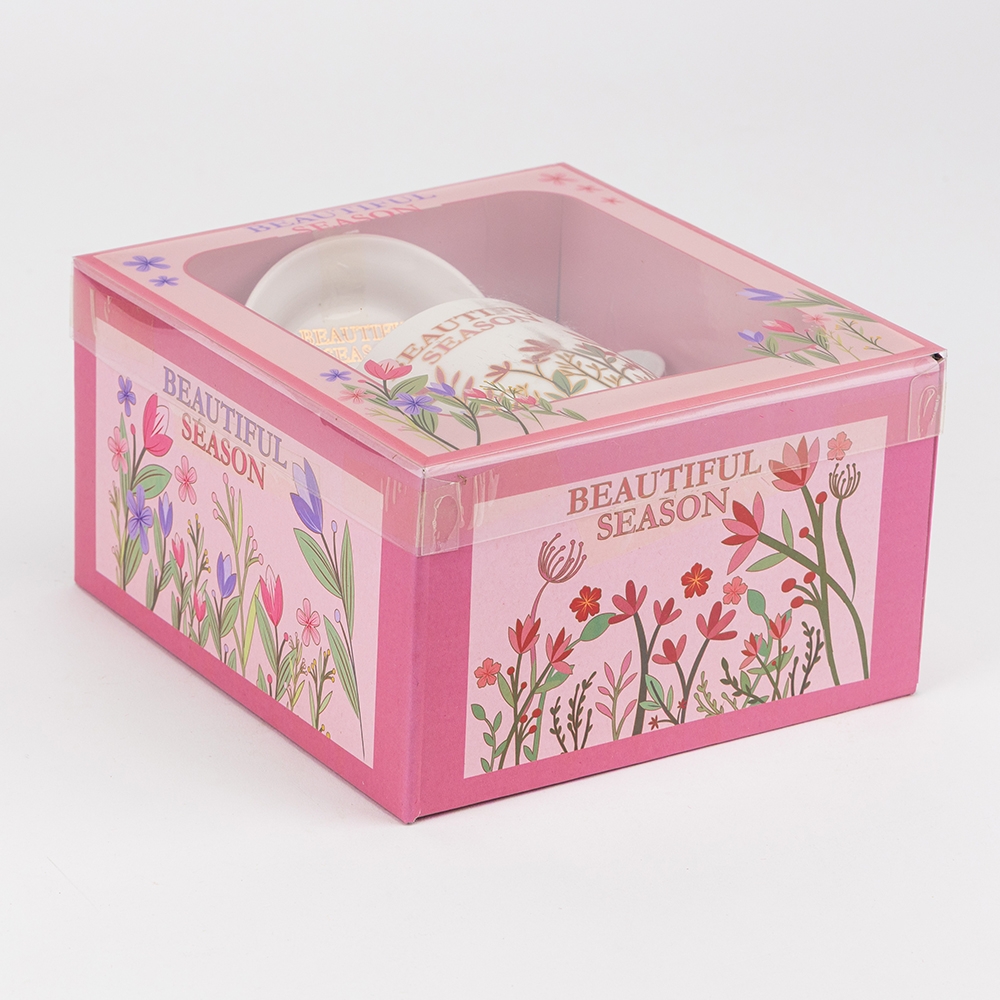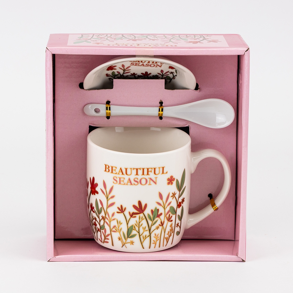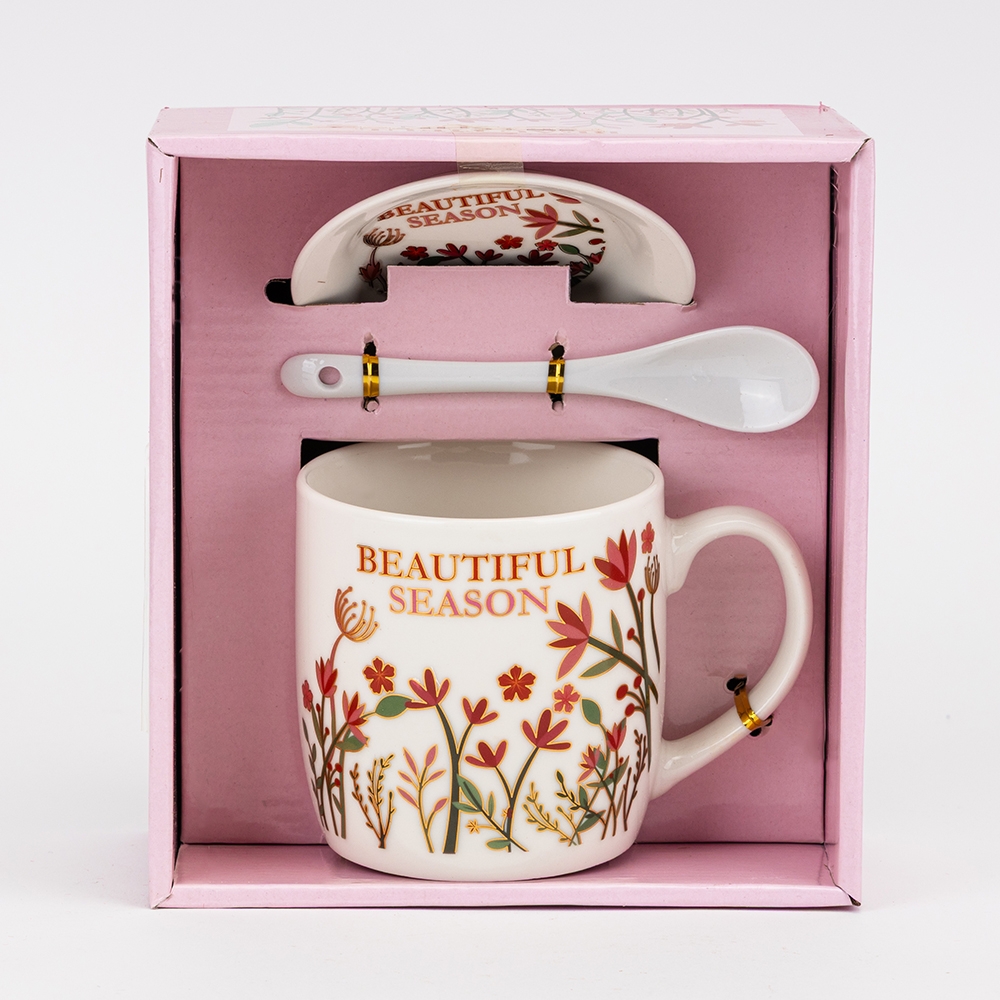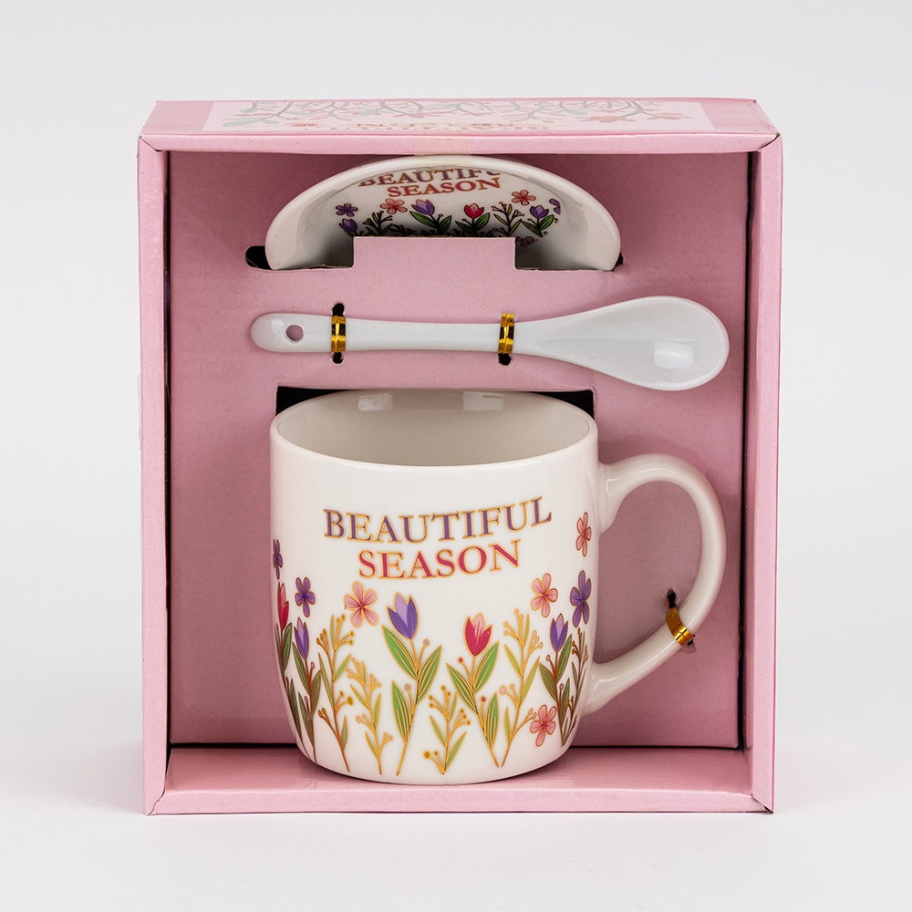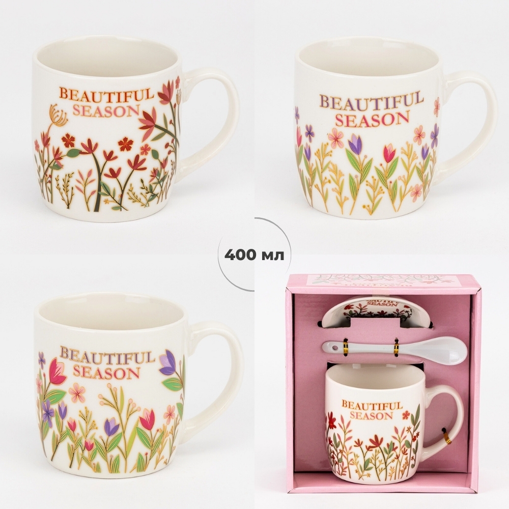 > Кружка с блюдцем и ложечкой "Beautiful season", 400 мл * Рандомный выбор дизайна (19298-010)