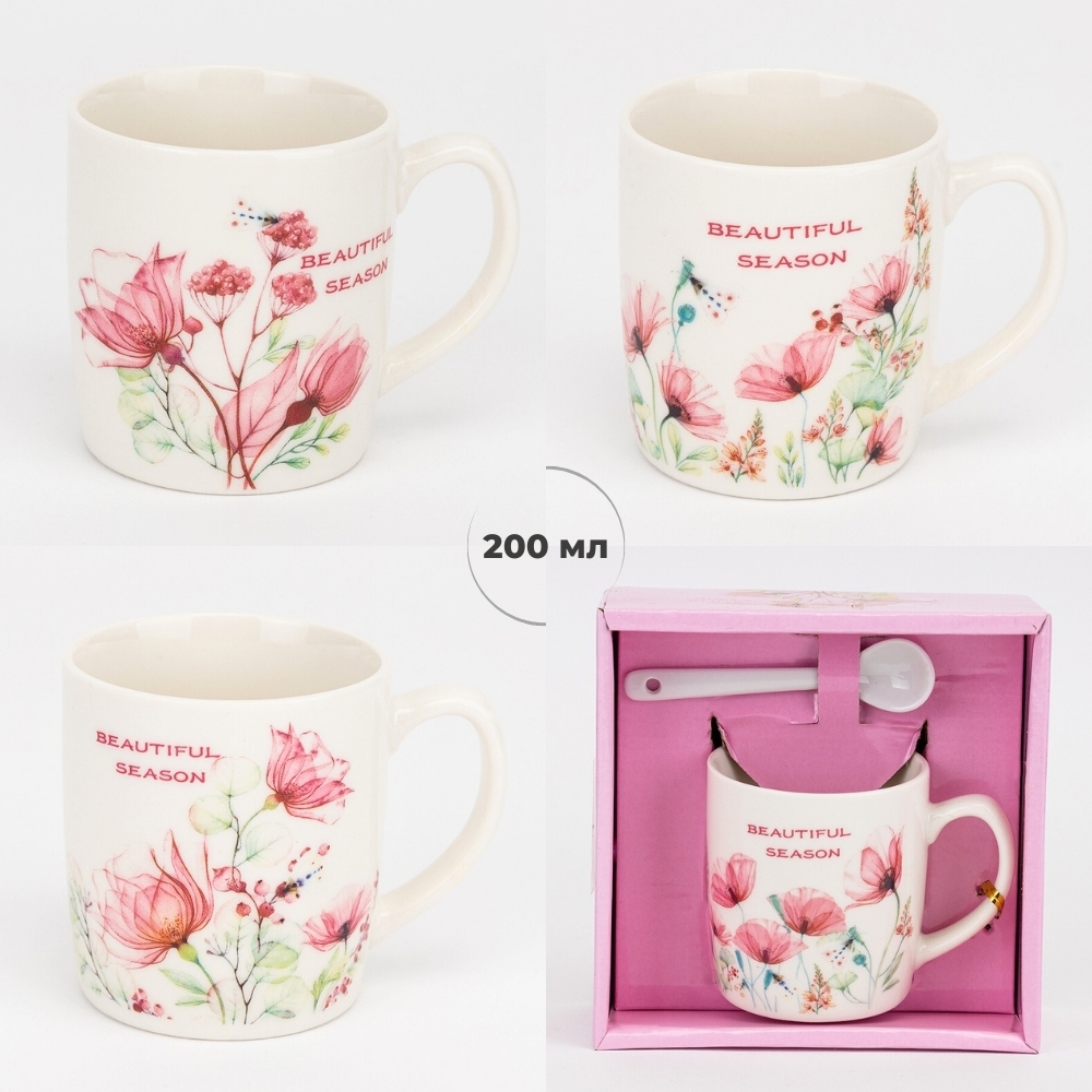 > Кружка с ложечкой "Маки", 200 мл * Рандомный выбор дизайна (19298-015)