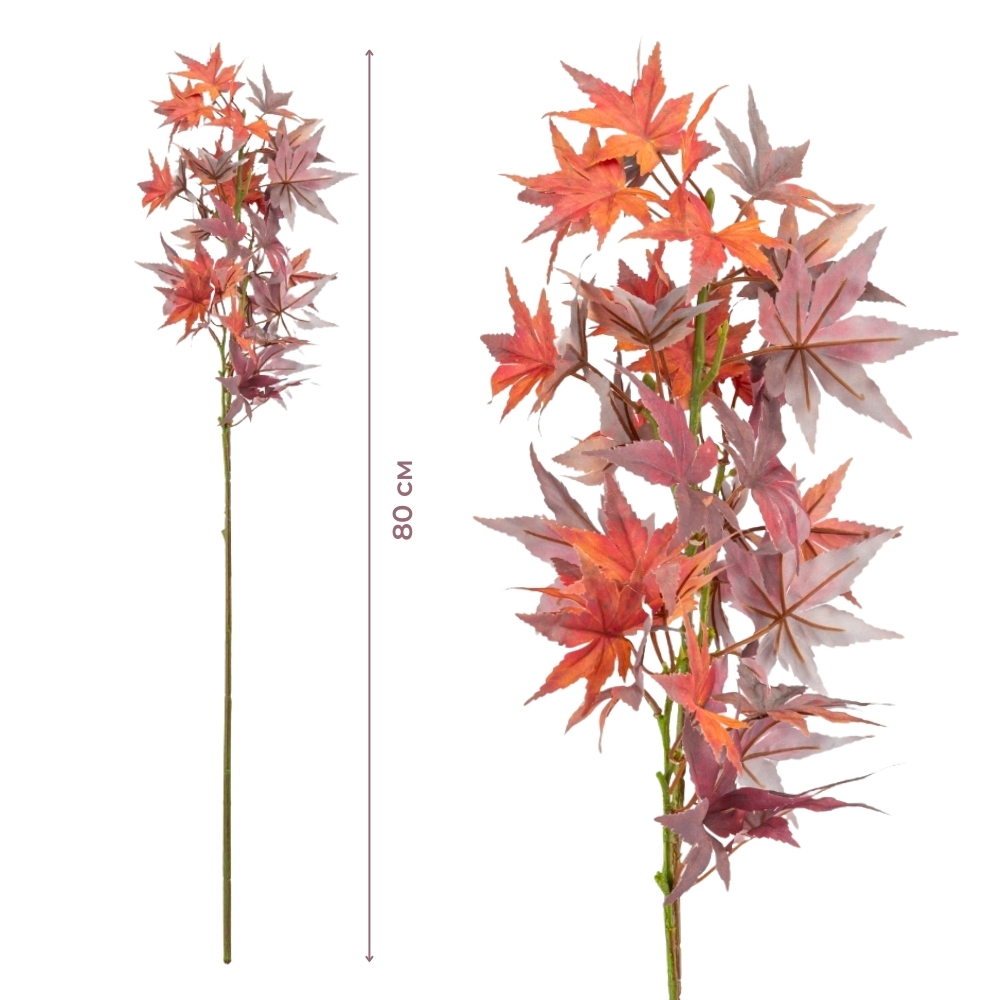 Искусственная ветвь высотой 80 см с заостренными листьями клена в теплых тонах красного и бордо — стильный акцент для оформления интерьеров в сегменте HoReCa. Ее реалистичный вид и насыщенный цвет создают атмосферу осеннего уюта и тепла. Идеально подходит для декорирования витрин, сезонных фотозон, столовых композиций и рецепций. Легкая в работе, держащая форму, сочетается с натуральными материалами и другими декоративными элементами.