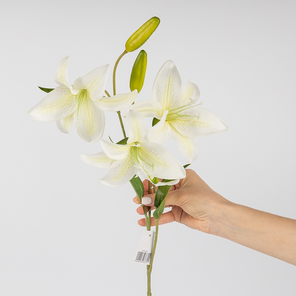 Высота - 77 см. Высота 1 бутона - 7 см, диаметр - 14,5 см. Элегантный декоративный цветок с реалистичными лепестками и листьями. Идеально подходит для букетов, оформления фотозон, свадеб, витрин и интерьеров. Не требует ухода, надолго сохраняет привлекательный внешний вид.