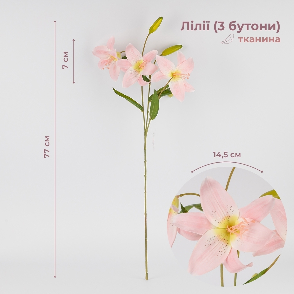 > Искусственная лилия, светло-розовая, 77 см (2019-017)