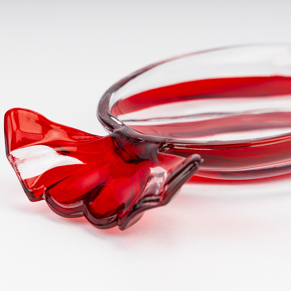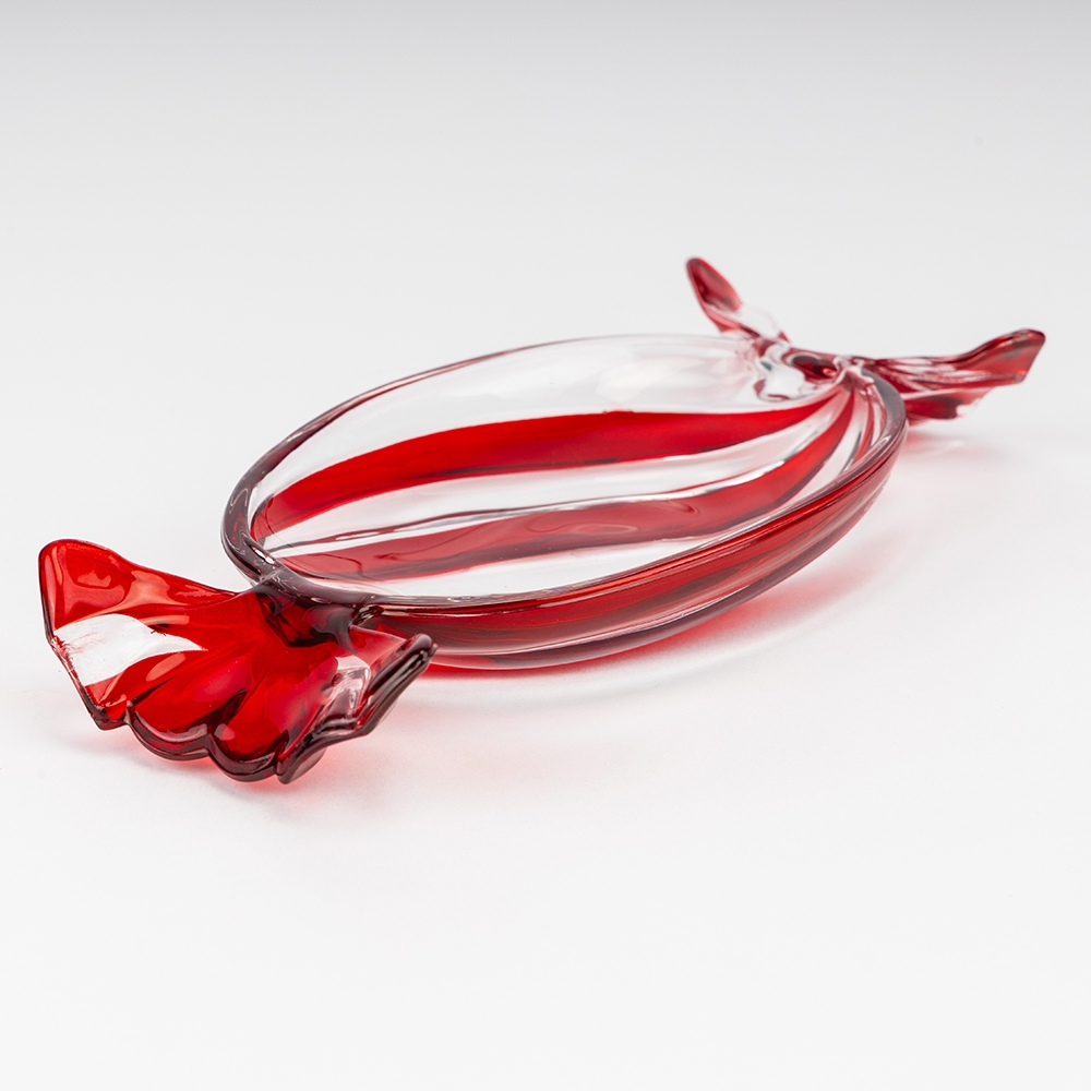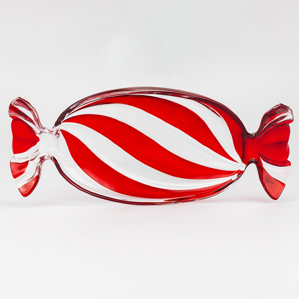 Длина — 23 см, ширина — 10,5 см, высота — 3,5 см. Декоративное стеклянное блюдо в форме конфеты станет ярким акцентом в сервировке. Его прозрачное стекло с красными полосатыми узорами создаёт эффект праздничной атмосферы и добавляет оригинальности интерьеру. Такая посуда отлично подходит для подачи конфет, мелких десертов или печенья, а также может использоваться как стильный элемент декора на новогоднем или тематическом столе. Благодаря необычной форме блюдо станет не только практичным аксессуаром, но и эффектным украшением вашего дома.
