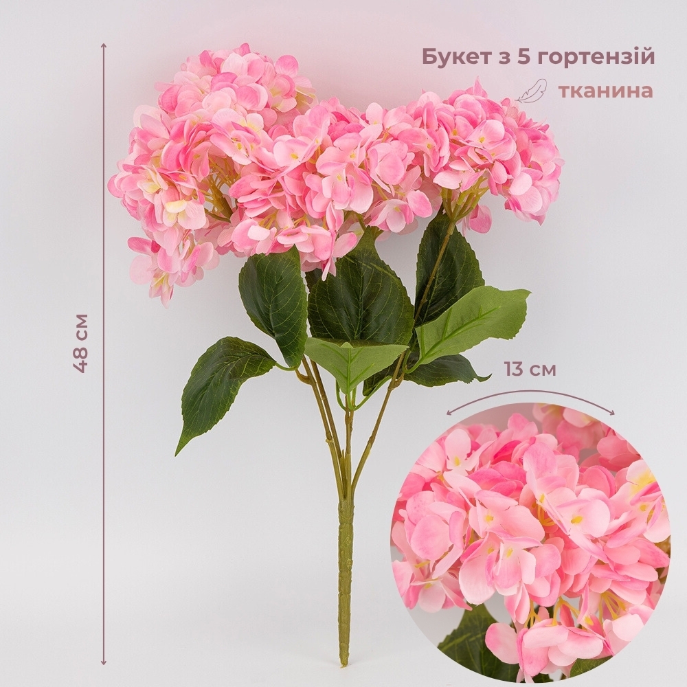 > Букет гортензий, 5 бутонов, розовый, 48 см (2026-008/gr.pink)
