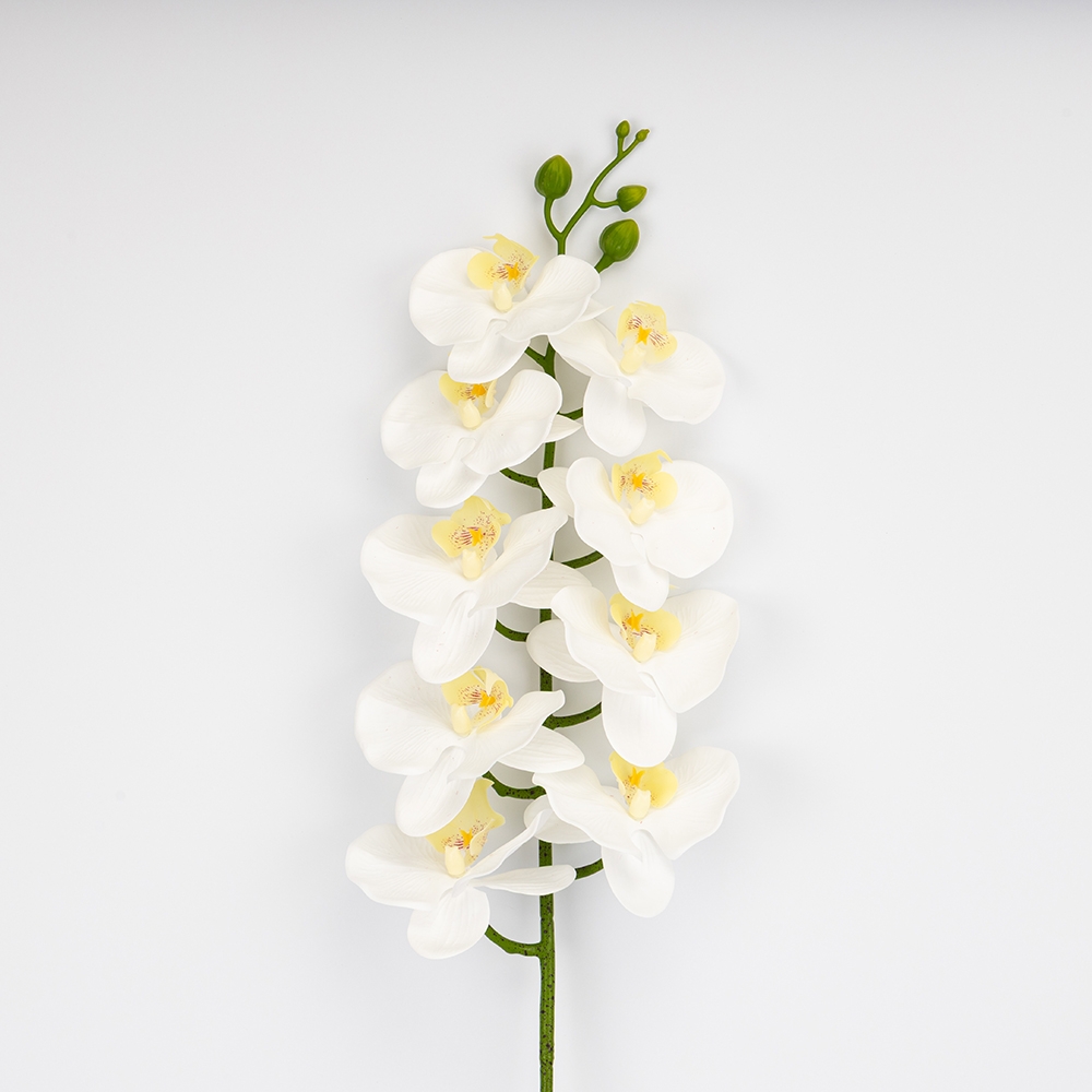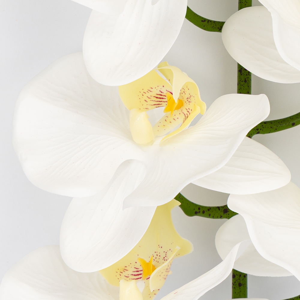 Высота – 95 см. Диаметр цветка – 10 см. Цветы выполнены из латекса, стебли – из пластика. Искусственная ветвь орхидеи с изящными лепестками и реалистичными бутонами придает элегантности любому интерьеру. Цветок имеет грациозные изгибы и детализированную текстуру, максимально приближенную к живому растению. Идеально подходит для декора витрин, ресторанов или фотозон.