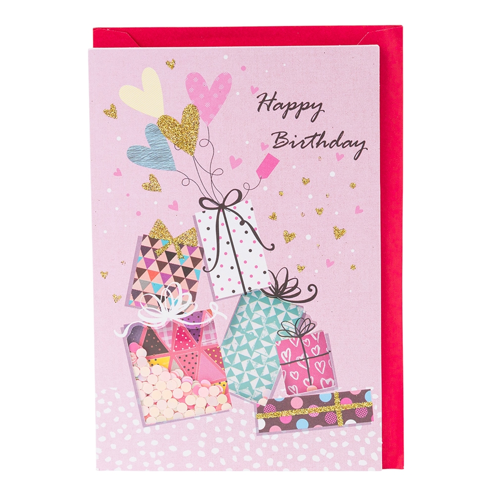В комплекте конверт. Высота – 15 см, ширина – 10 см. Поздравительная открытка ко Дню рождения с конвертом станет ярким дополнением к вашему подарку. Особое внимание привлекает прозрачное «окошко» с пайетками, которые двигаются при легком движении и создают эффект праздника. Открытка изготовлена из качественного плотного картона, а внутри оставлено место для личных пожеланий. Это стильный и оригинальный способ приветствовать родных, друзей или коллег.