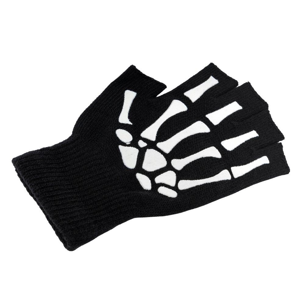 Перчатки на Хэллоуин "Скелет" — стильный и эффектный аксессуар для завершения пугающего костюма! Чёрные перчатки с белым принтом костей идеально подойдут для образа скелета, зомби или любого страшного персонажа. Удобная длина без пальцев не сковывает движения и добавляет дерзости. Такие перчатки станут отличным дополнением к карнавальному костюму на вечеринке, тематическом празднике или фотосессии.