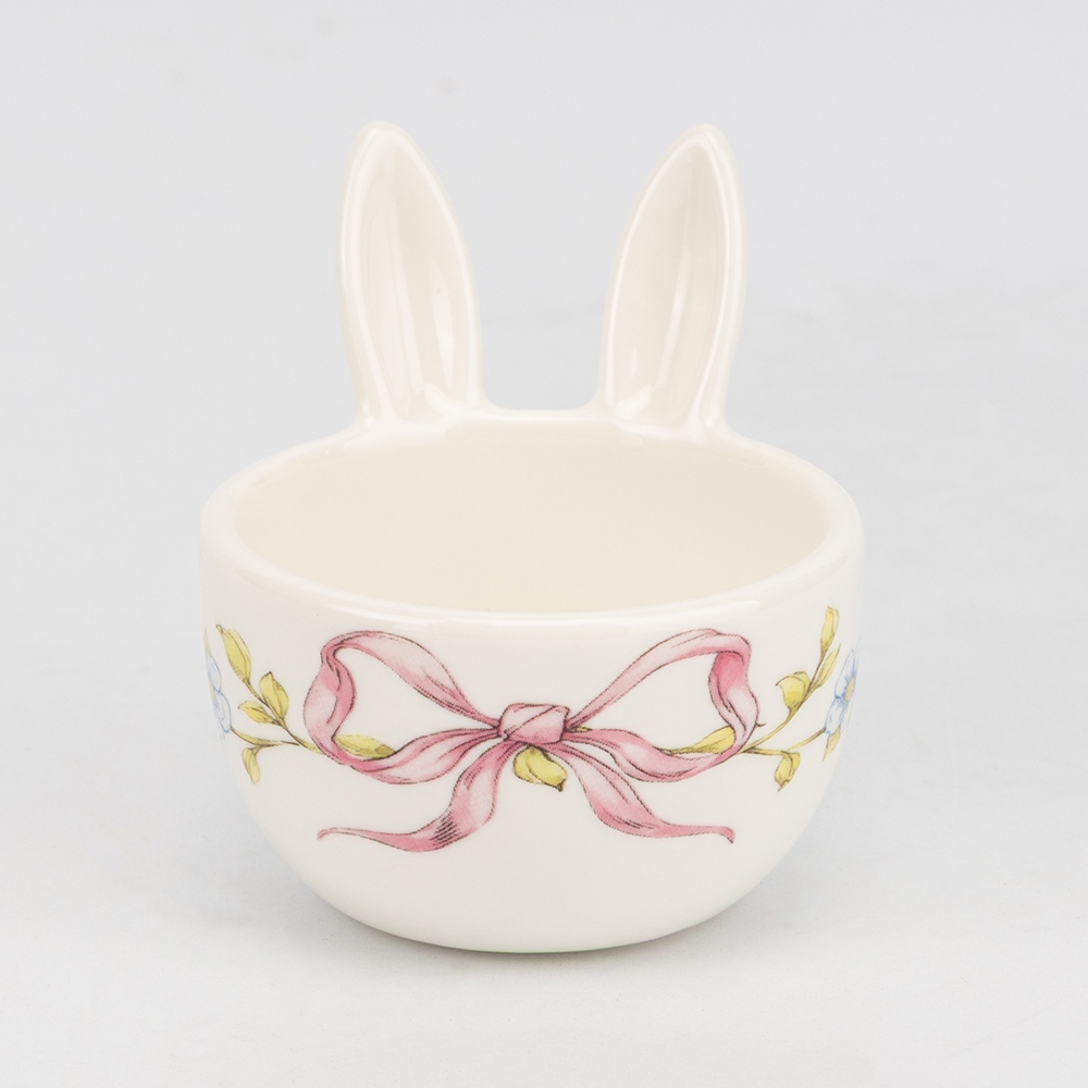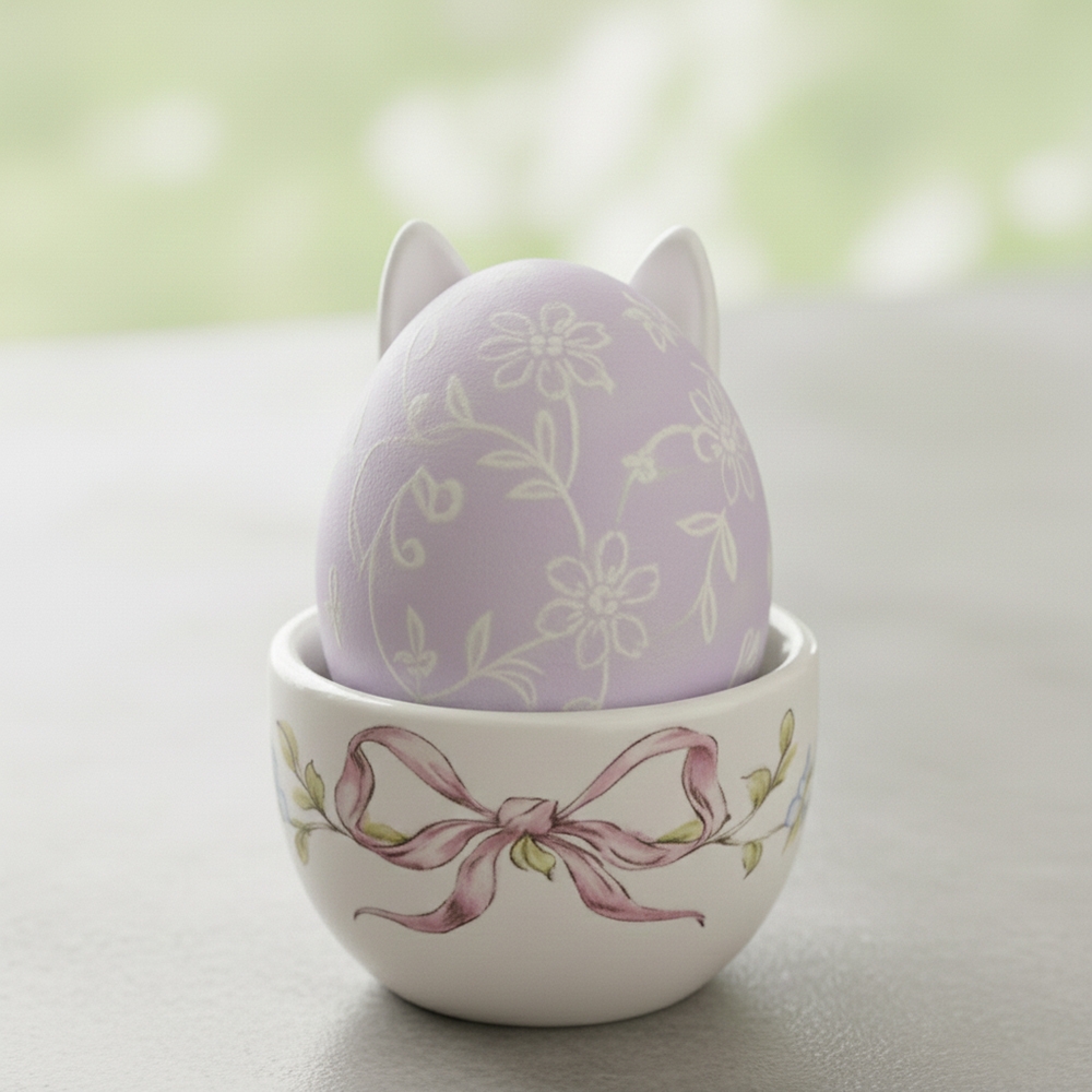Диаметр – 6 см, высота – 6 см. Керамическая подставка под яйцо – нежный праздничный акцент, который сделает пасхальный стол особенным. Дизайн в форме кролика с милыми ушками в сочетании с нежной росписью цветов и розовых бантов создает атмосферу весеннего уюта. Высокое качество исполнения и глянцевый блеск делают его не просто посудой, а настоящим украшением пасхальной сервировки. Такой аксессуар станет идеальным подарком для тех, кто ценит эстетику в деталях и стремится создать незабываемое праздничное настроение.