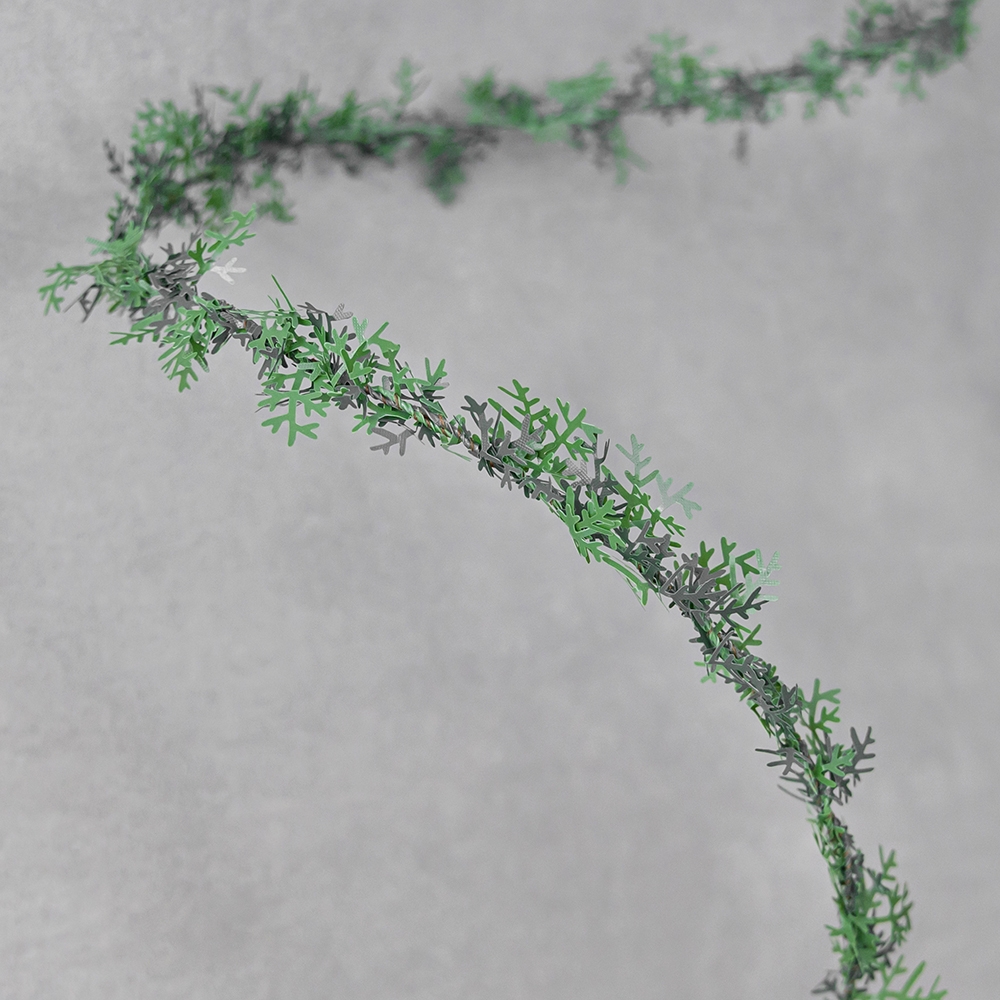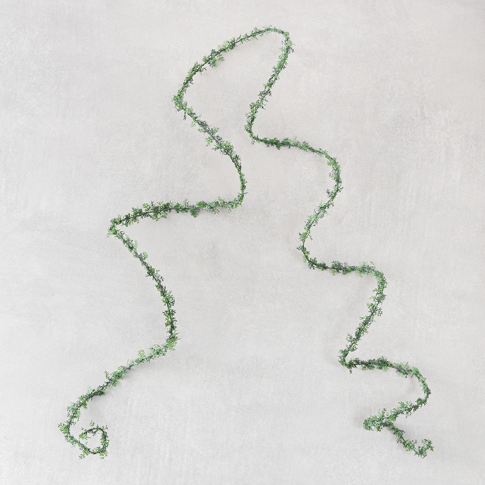 Гирлянда из искусственной зелени длиной 300 см — универсальный элемент декора, придающий простор природному шарму. Ее структура напоминает густую, мелколистную зелень, которая выглядит естественно и эстетично. Идеально подходит для оформления интерьеров ресторанов, кафе, событийных просторов и фотозон. Гирлянда гибкая, легко фиксируется и отлично сочетается с другими декоративными элементами.
