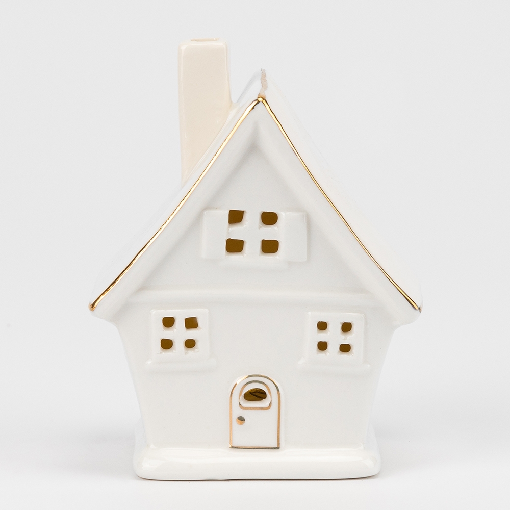Высота – 12 см, длина – 9,4 см, ширина – 6,8 см. Керамический подсвечник в виде волшебного домика создаст настоящую атмосферу тепла и уюта в зимние вечера. Яркие детали и аккуратное исполнение делают его красивым акцентом для любого интерьера. Изготовлен из качественной керамики, он будет служить вам не один праздничный сезон и подарит особое настроение всякий раз, когда вы зажигаете в нем свечу.