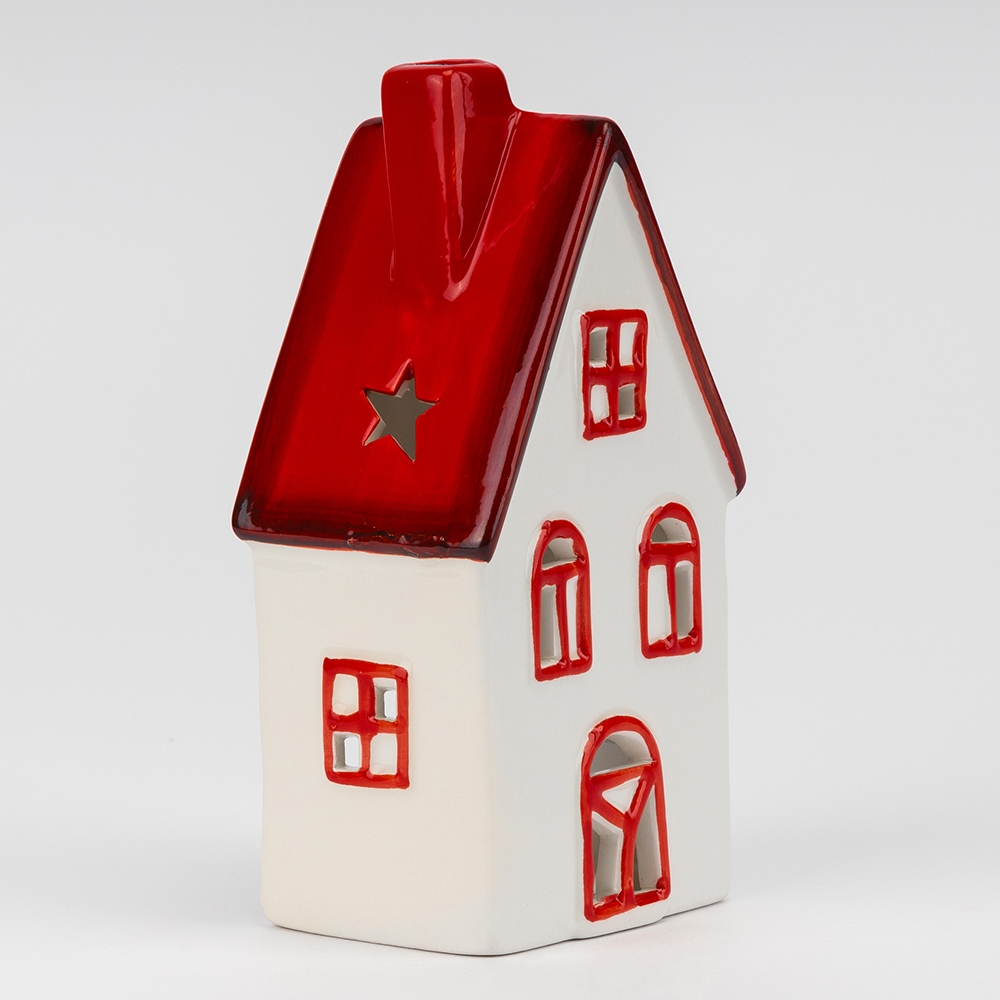 Высота – 17,5 см, длина – 9,5 см, ширина – 7,5 см. Керамический подсвечник в виде волшебного домика создаст настоящую атмосферу тепла и уюта в зимние вечера. Яркие детали и аккуратное исполнение делают его красивым акцентом для любого интерьера. Изготовлен из качественной керамики, он будет служить вам не один праздничный сезон и подарит особое настроение всякий раз, когда вы зажигаете в нем свечу.