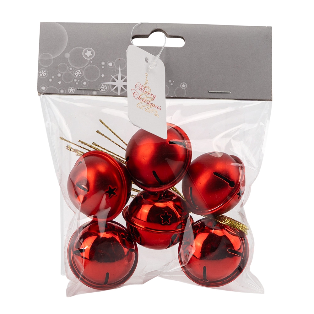 В наборе 6 шт. Набор красных колокольчиков – стильное решение для создания уютной новогодней атмосферы. Колокольчики выполнены из металла, поэтому они прочные и долговечные. В комплекте сочетаются матовые и глянцевые украшения, которые в свете гирлянд сияют и переливаются, делая ваш декор ещё более эффектным.