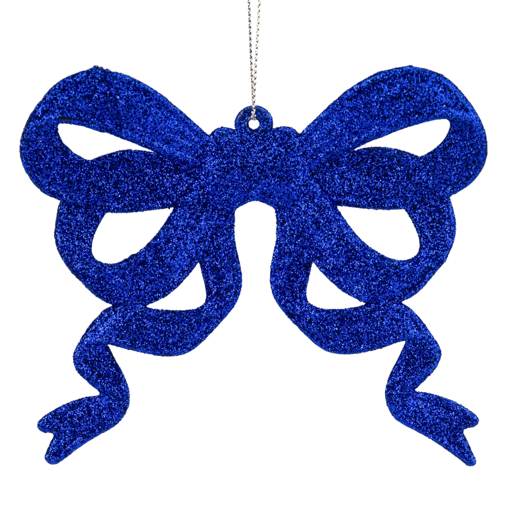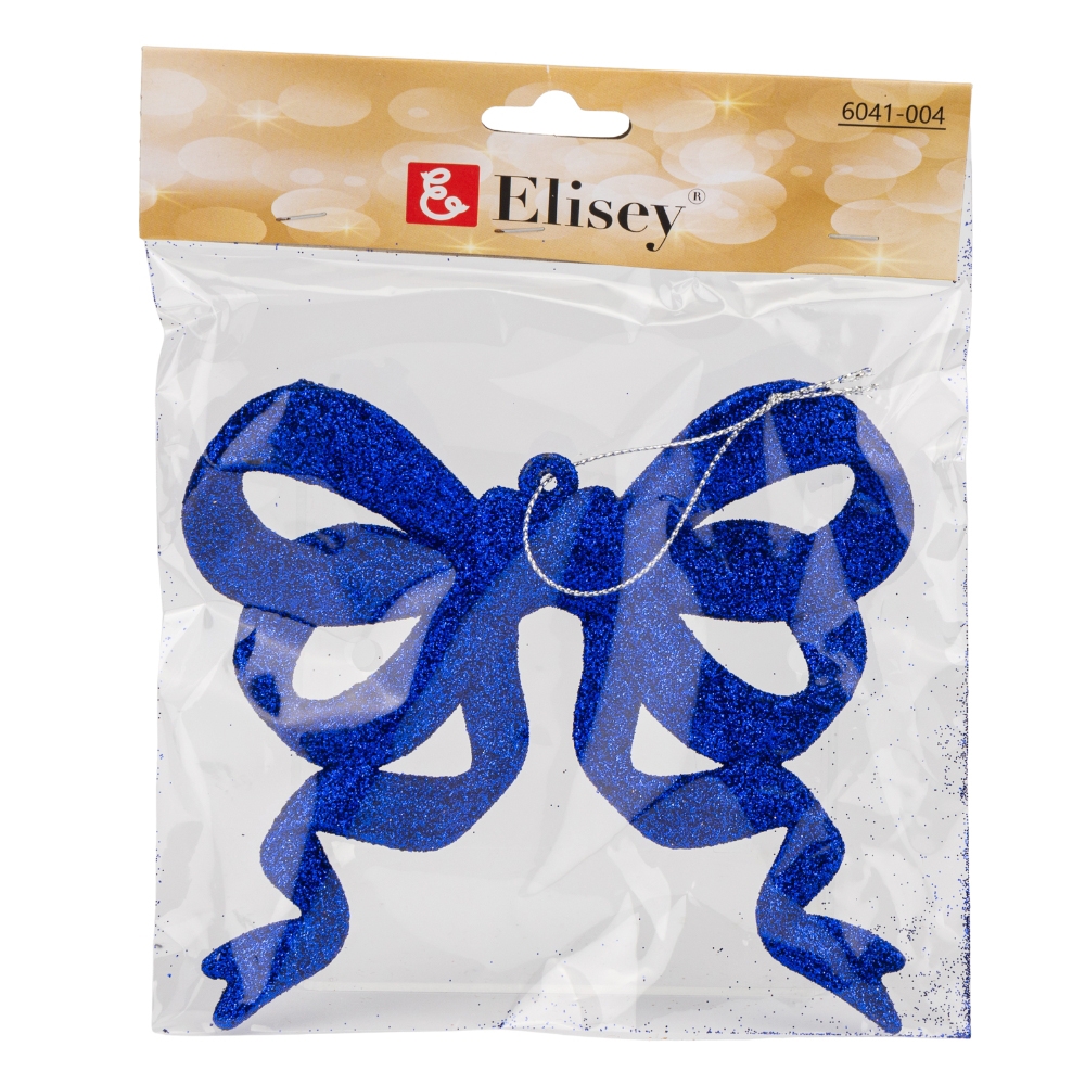 Елочная игрушка "Блестящий бантик", синяя, 12 см (6041-004)