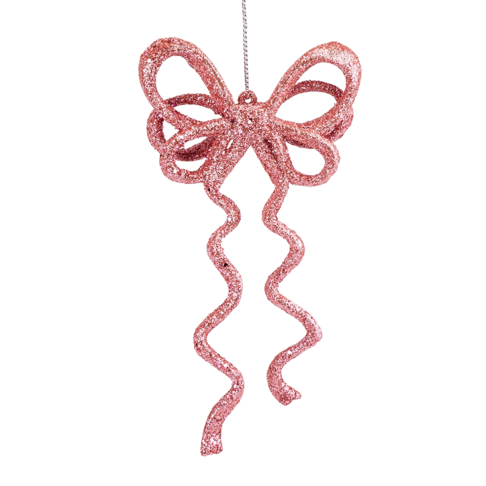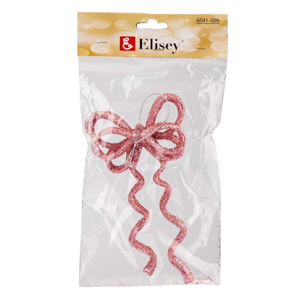 Елочная игрушка "Блестящий бантик", розовая, 17 см (6041-009)