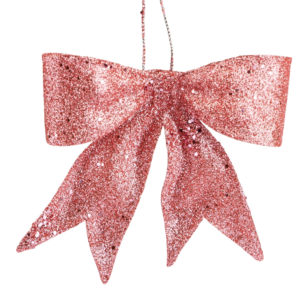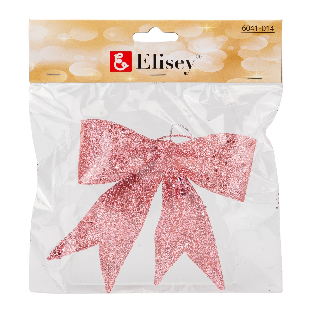 Елочная игрушка "Блестящий бантик", розовая, 11 см (6041-014)