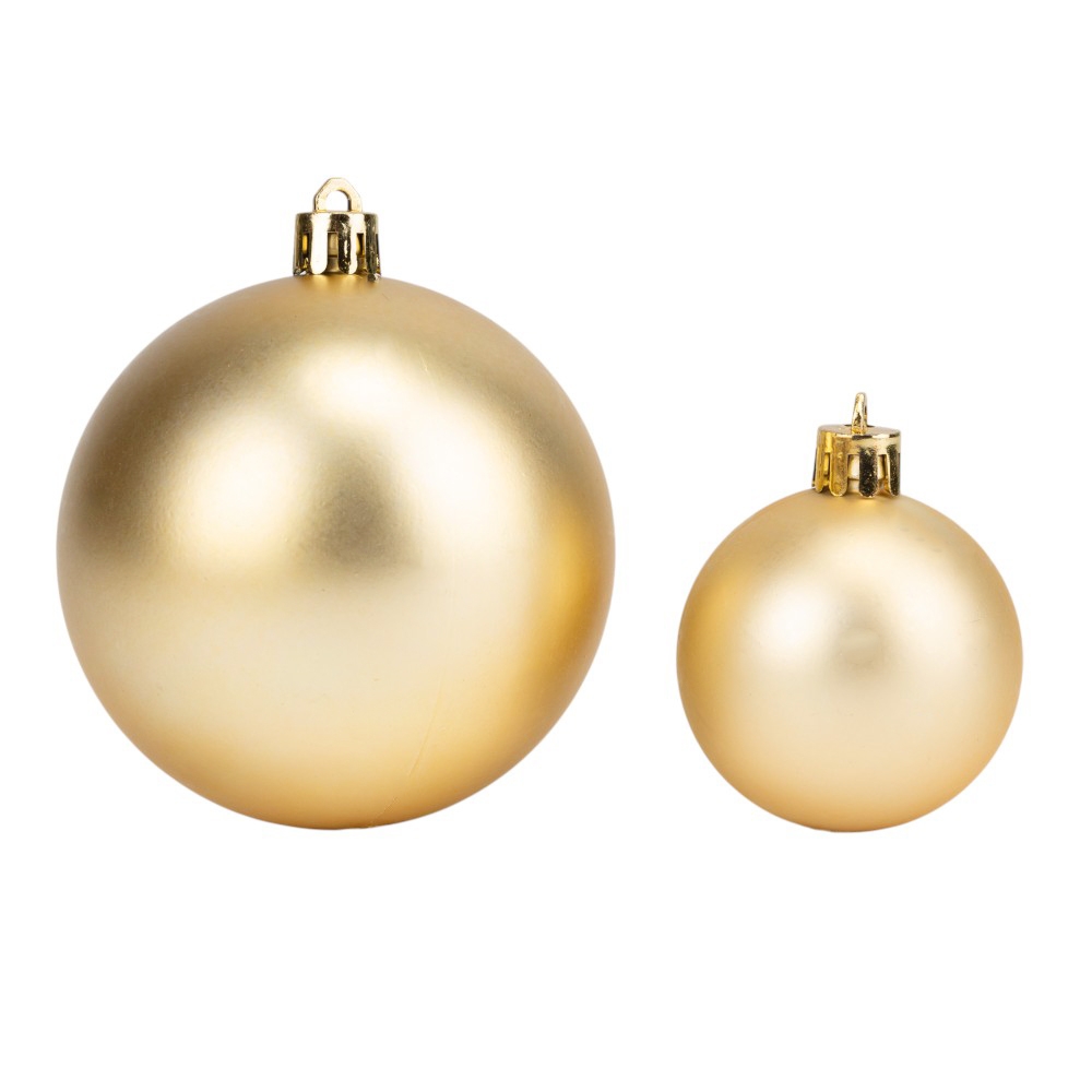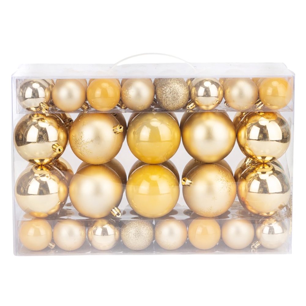 Этот роскошный набор елочных игрушек включает в себя 68 шаров золотого цвета, диаметром от 4 см до 7 см, изготовленных из пластика высокого качества. Игрушки представлены в разных размерах, что позволяет создать гармоничный декор на елке. В набор входят украшения разной текстуры и стиля. Игрушки разных размеров позволяют равномерно заполнить елку, создавая эффект многослойности и объема. Этот набор идеально подходит для украшения большой елки, придавая вашему пространству волшебную атмосферу и настоящее рождественское чудо.
