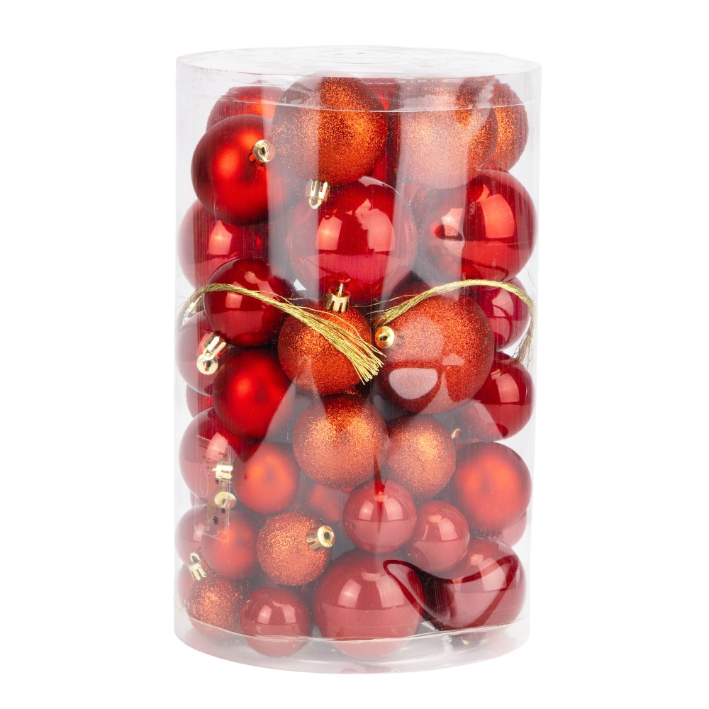 Этот роскошный набор елочных игрушек включает в себя 60 шаров красного цвета, диаметром от 4 см до 6 см, изготовленных из пластика высокого качества. Игрушки представлены в разных размерах, что позволяет создать гармоничный декор на елке. В набор входят украшения разной текстуры и стиля. Игрушки разных размеров позволяют равномерно заполнить елку, создавая эффект многослойности и объема. Этот набор идеально подходит для украшения большой елки, придавая вашему пространству волшебную атмосферу и настоящее рождественское чудо.