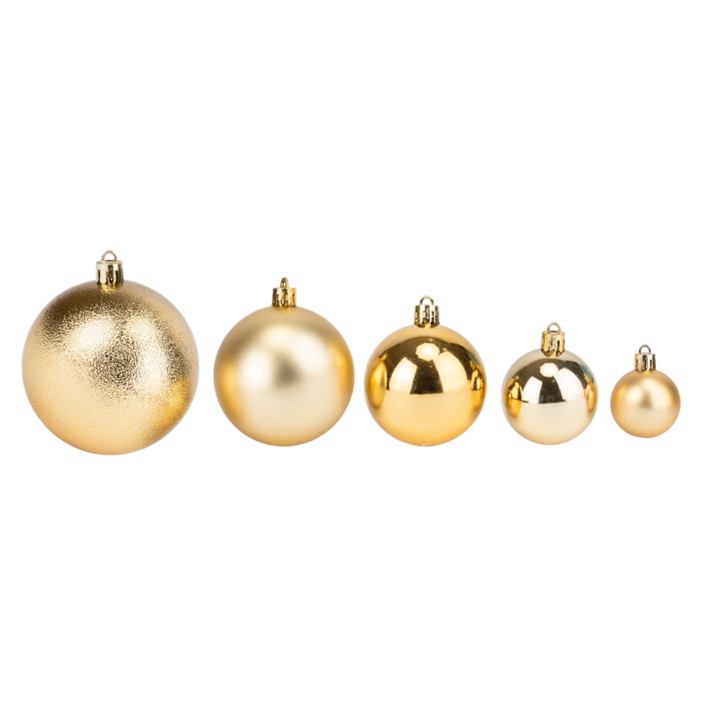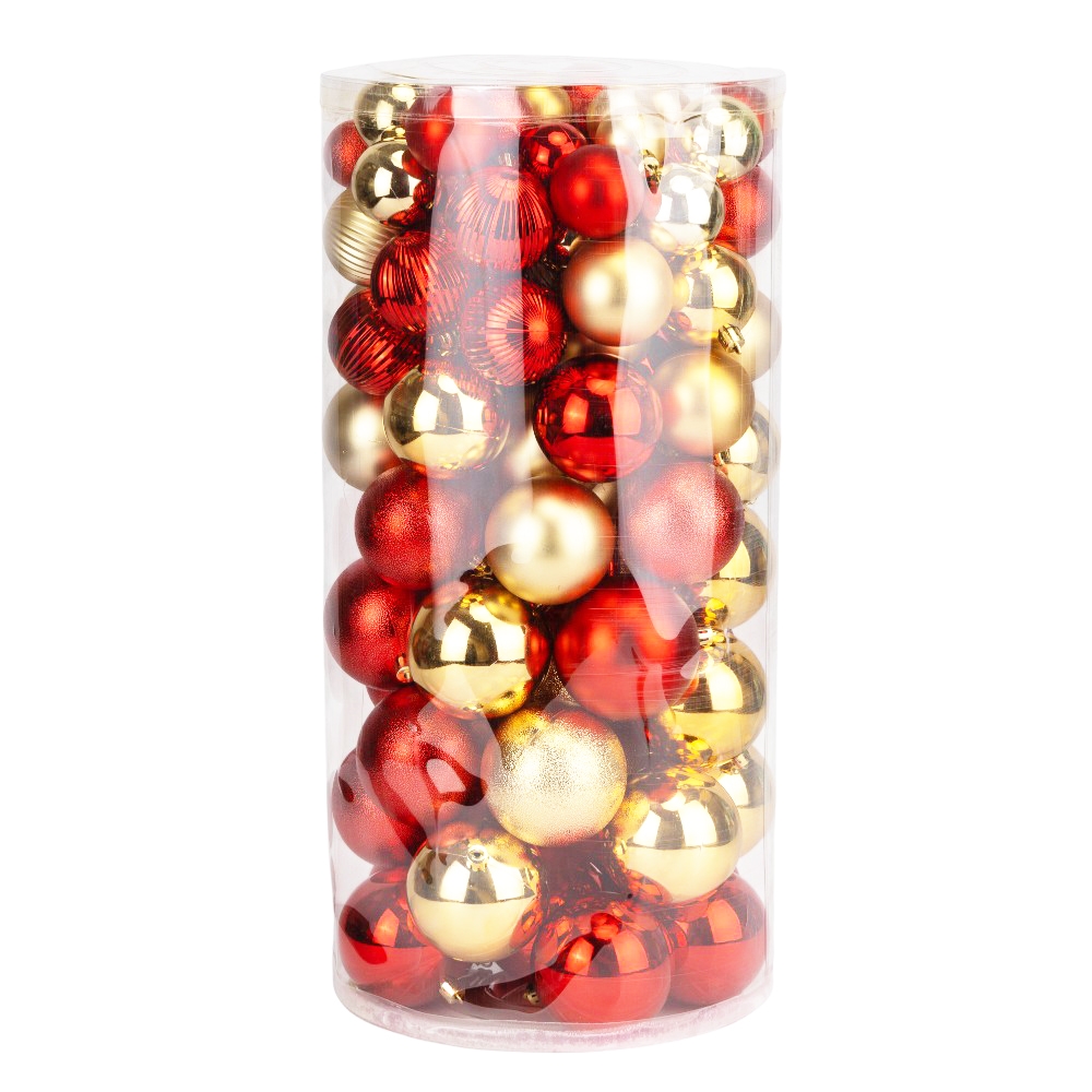 Этот роскошный набор елочных игрушек включает в себя 100 шаров золотого и красного цвета, диаметром от 4 до 7 см, изготовленных из пластика высокого качества. Игрушки представлены в разных размерах, что позволяет создать гармоничный декор на елке. В набор входят украшения разной текстуры и стиля. Игрушки разных размеров позволяют равномерно заполнить елку, создавая эффект многослойности и объема. Этот набор идеально подходит для украшения большой елки, придавая вашему пространству волшебную атмосферу и настоящее рождественское чудо.