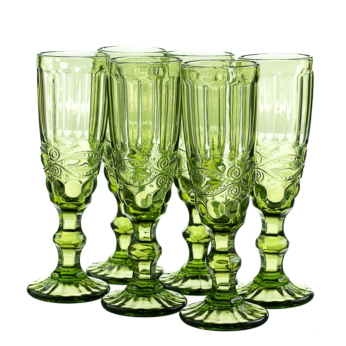 Шампанское - это напиток, который ассоциируется с праздником и хорошим настроением. Именно поэтому стоит подавать его в специальных бокалах - фужерах. Набор из 6 бокалов оригинального дизайна создаст уютную атмосферу праздничного застолья. А объем в 150 мл. идеально распределит игривые пузыри шампанского и позволит насладиться аристократичным напитком.