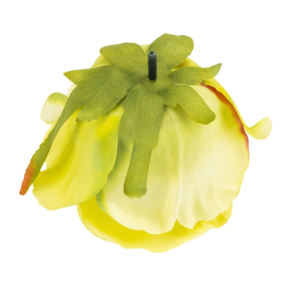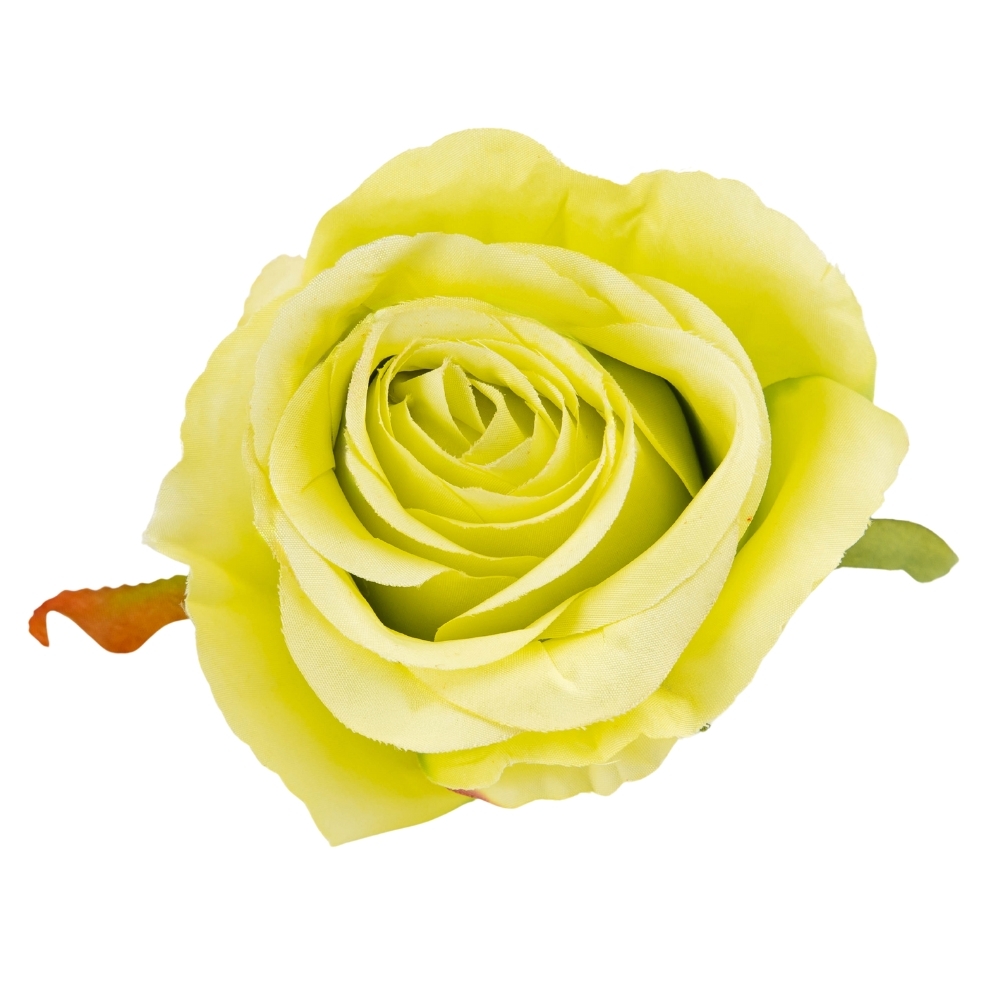 Искусственная головка розы диаметром 8 см изготовлена из качественной ткани, имитирующей натуральные лепестки. Пластиковый хвостик позволяет удобно крепить бутон к разным поверхностям или декорациям.